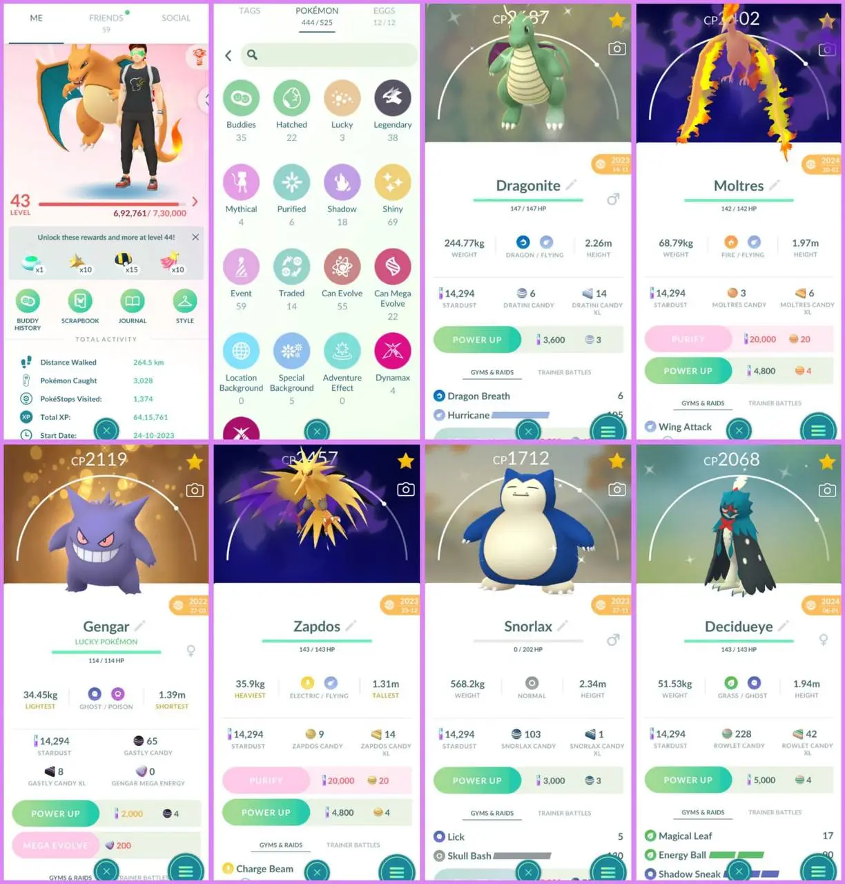 LEVEL 43(VALOR)💎444/525 Pokemon💎69 Shiny💎38 Legendary💎Lucky Gengar💎Shiny Snorlax💎legendary Moltres💎Name Change Available💎Instant Delivery🚚