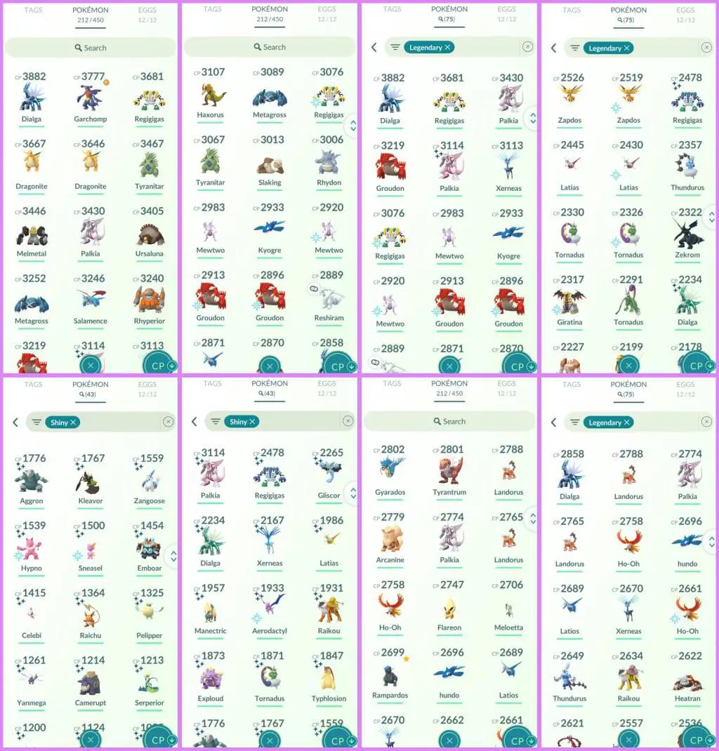 LEVEL 56(MYSTIC)🔥212/450 Pokemon🔥75 Legendary🔥43 Shiny🔥Legendary Mewtwo🔥Shiny Dialga🔥Name Change Available🔥Instant Delivery