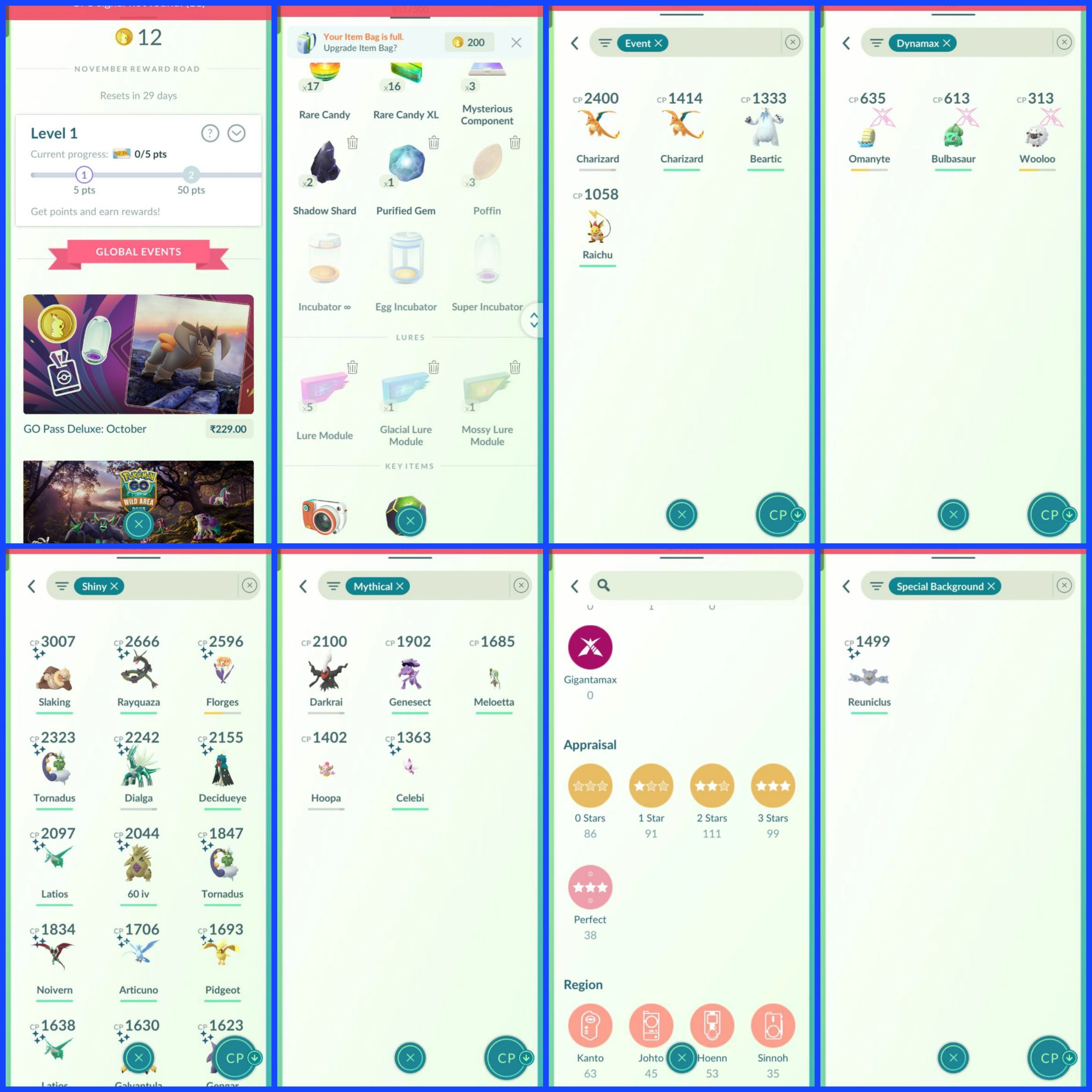 🔥LVL 49(YEAR 2021)🥶 SHINY LEGENDARY,MYTH- 2 x LATIAS, RAYQUAZA, DIALGA, 2 X TORNADUS, ARTICUNO, CELEBI 💀80 LEGENDARY, MYTH✨ 172 SHINY🥲3 DMAX 🍁OP ACC🔥 #JM