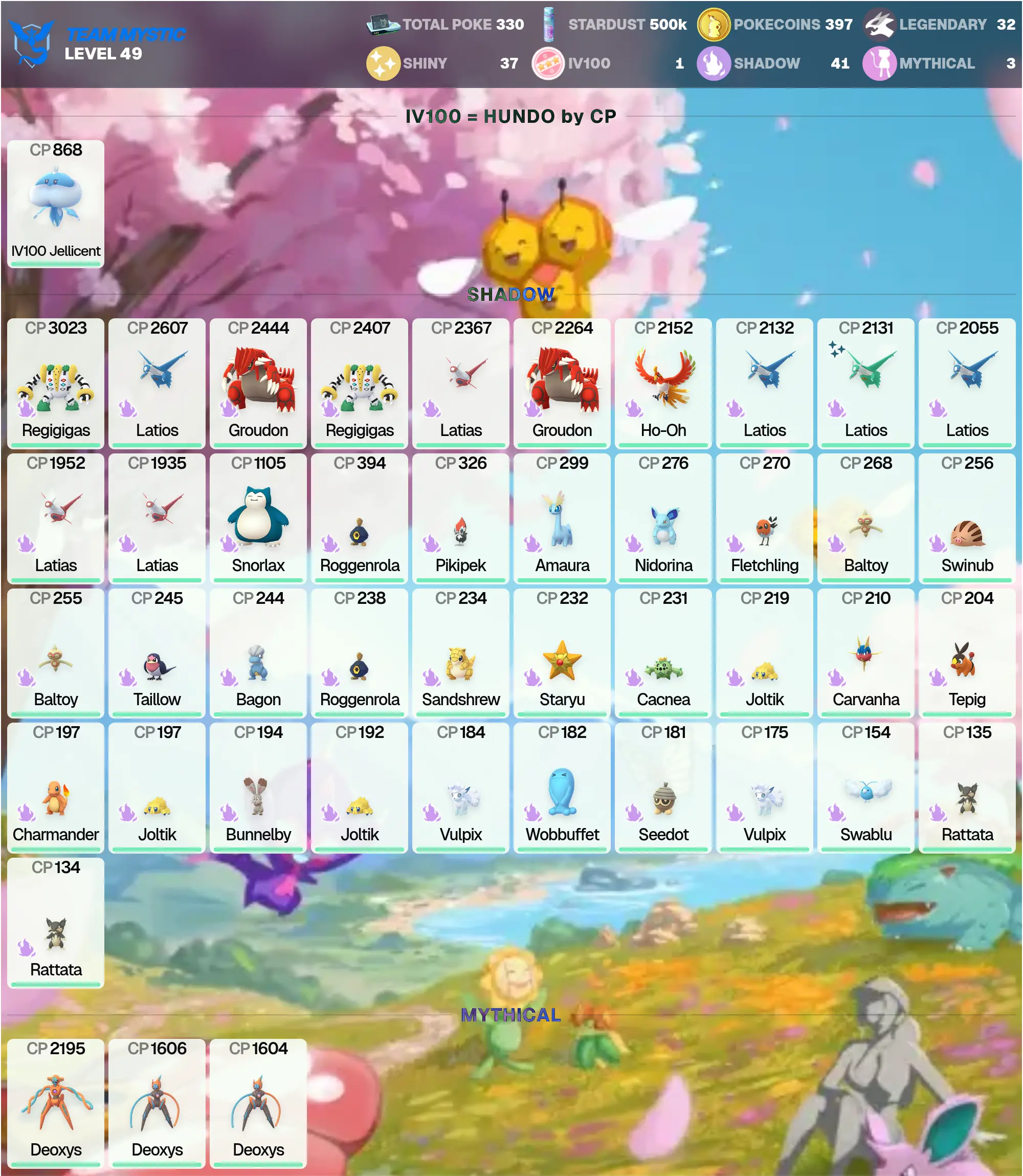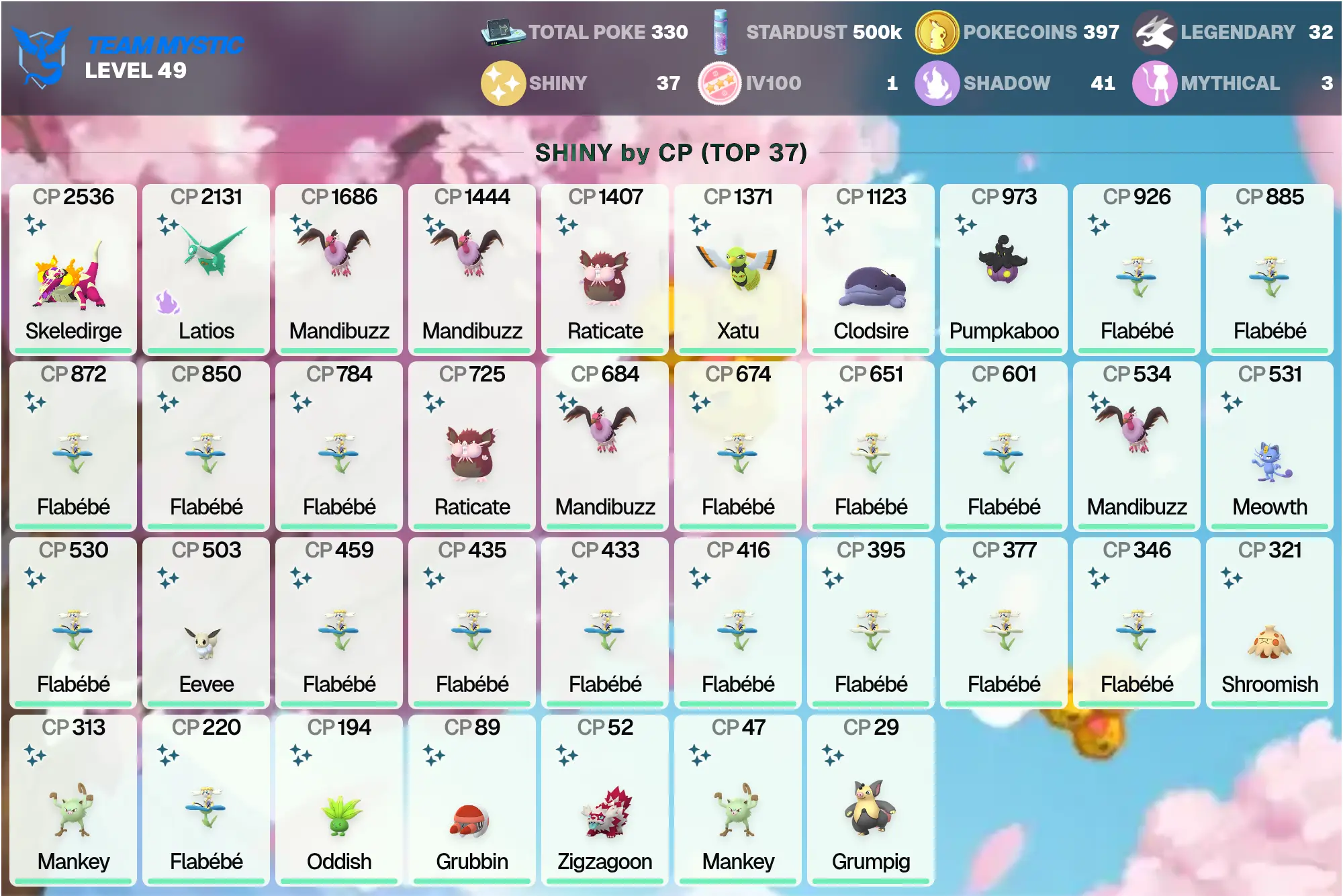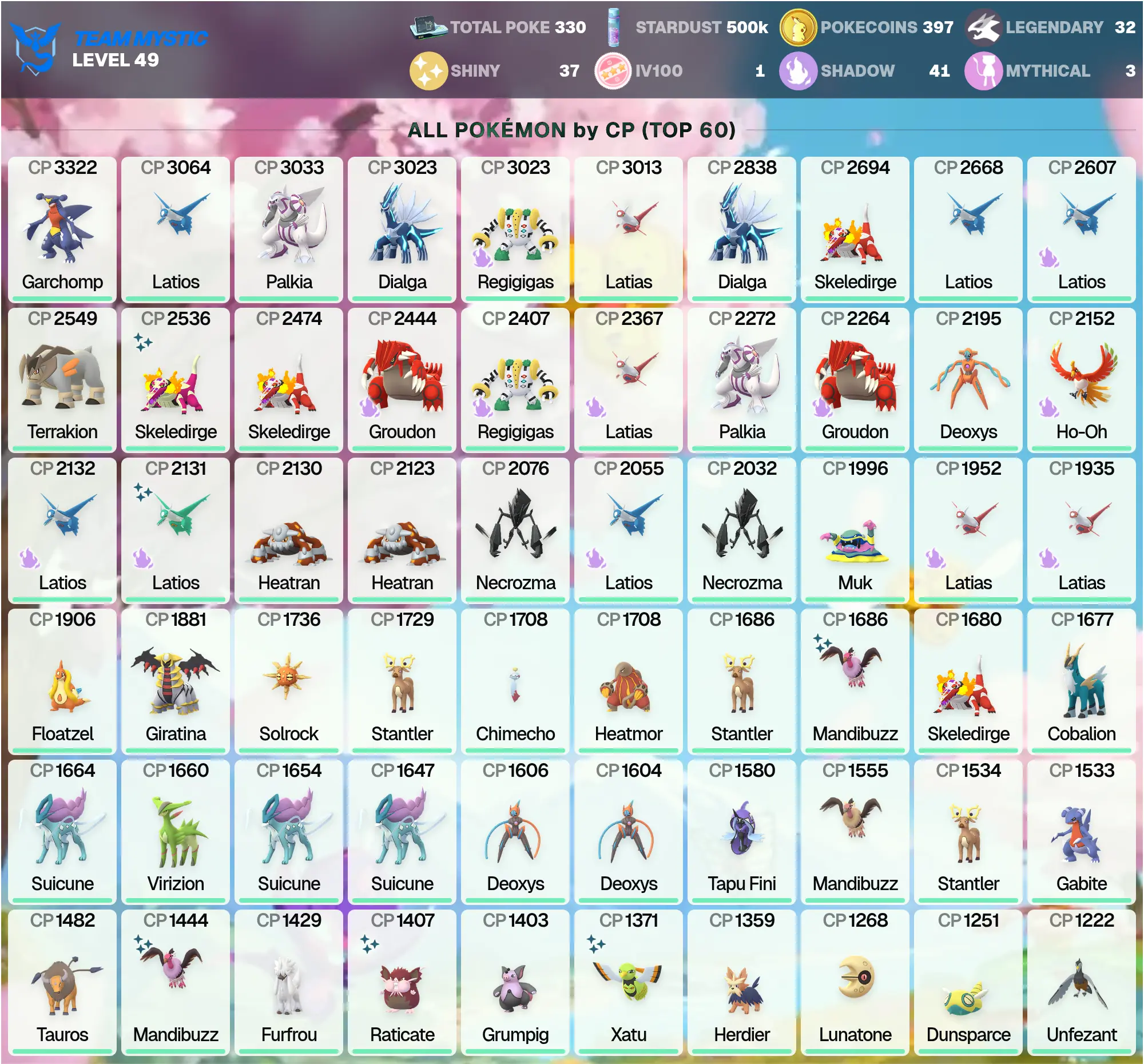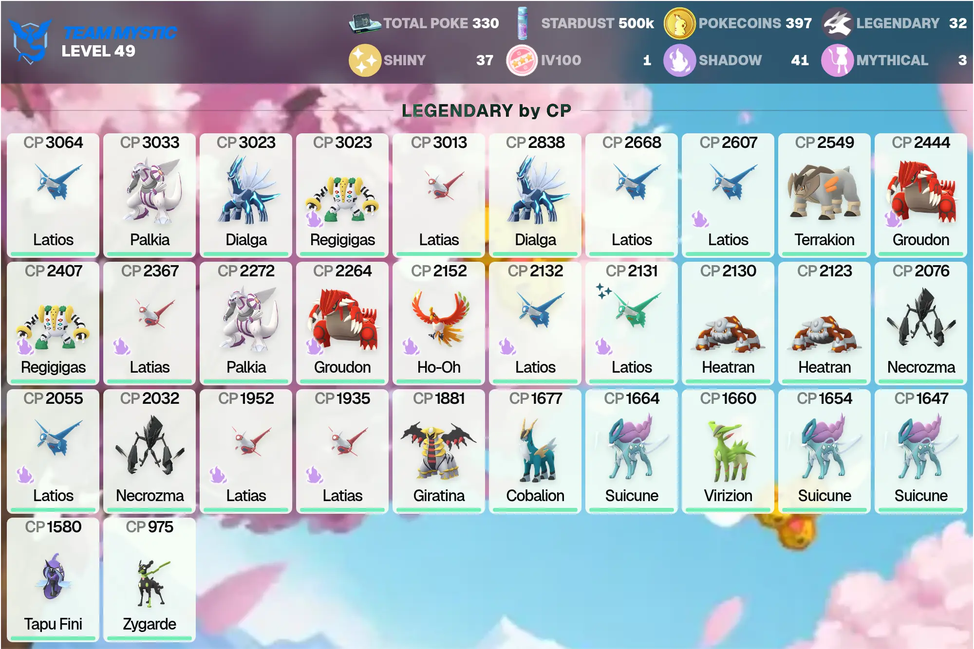 👑 POGO 🏆 Legendary: 32 🌟 | Shadow Regigigas 3K 🪨 | Dialga 3K ⏳ | Shiny: 37 ✨ | MEGA: Garchomp 4.5K 🐉, Latias 4K 🐉, Latios 4K 🐉 | Palkia 3K 🌊 | Shiny Latios 🐉 | [MG] | PG-UYDTZ !MKG016345