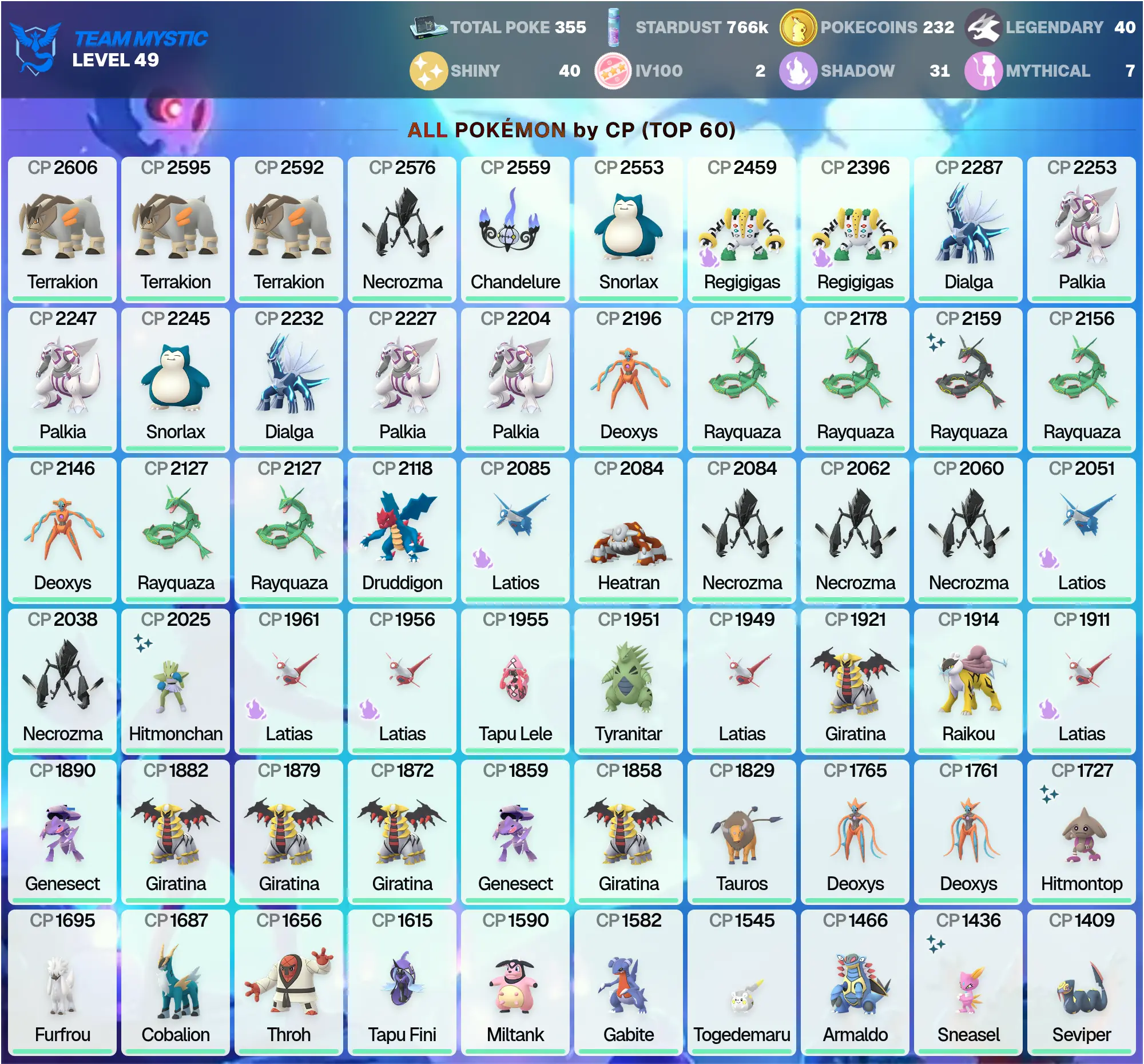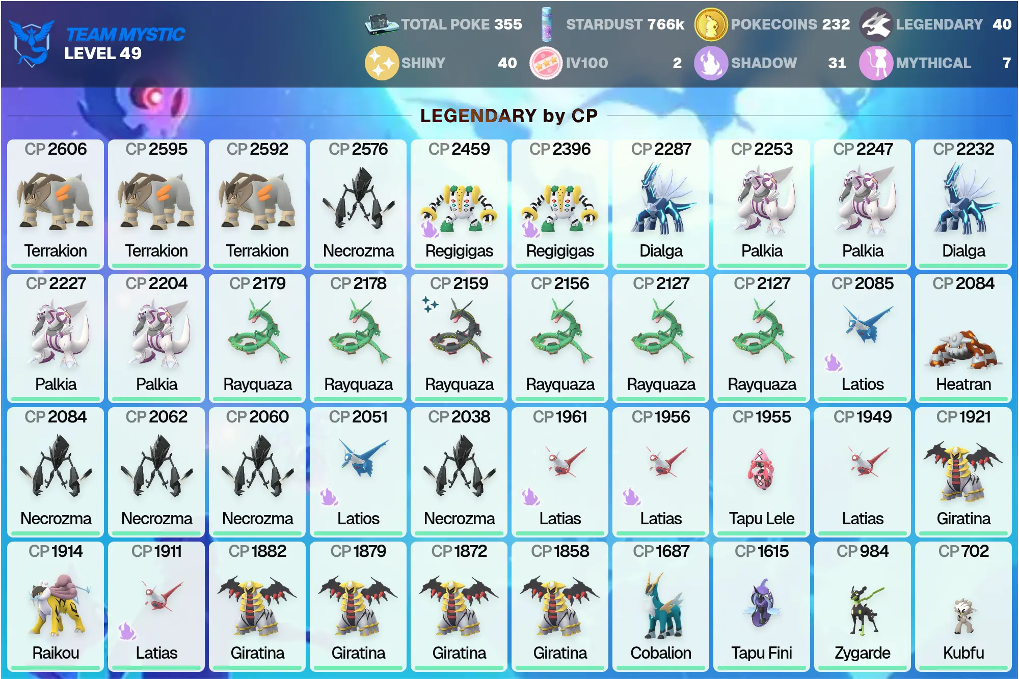 👑 POGO 🏆 Terrakion ⚔️ | Shiny: 40 ✨ | Dialga ⏳ | Latias 🐉 | Shiny MEGA Rayquaza CP 5484 🌪️ | Latios 🐉 | Tapu Lele 🌺 | Necrozma 🌌 | Legendary: 40 🌟 | Palkia 🌊 | PG-XKPXC | [MG] !MKG016351