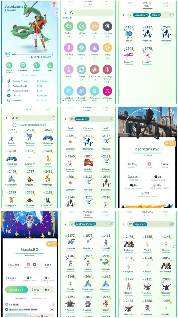 VF39 | Level53 | 96 Legendary | 46 Shiny | Mega Lucky Rayquaza With DA Move | Shiny Mega Lucario | 5 Shiny Legend | Special Background Luanana | New York Location Bg Necrozma | Mewtwo | Shiny Darkrai | Stacked Account