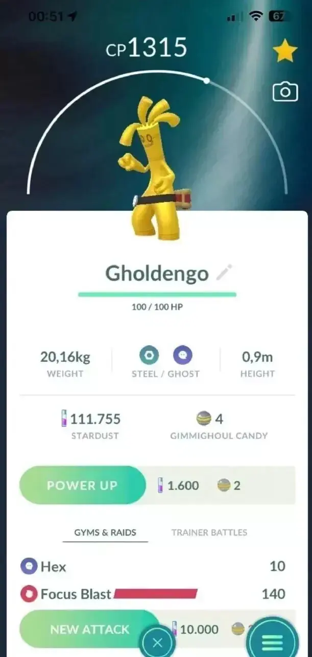 Pokémon - Gholdengo Level 50 3moveset pvp Master ( Gimmighoul Evolution )- 20k Stardust T r a d e Go