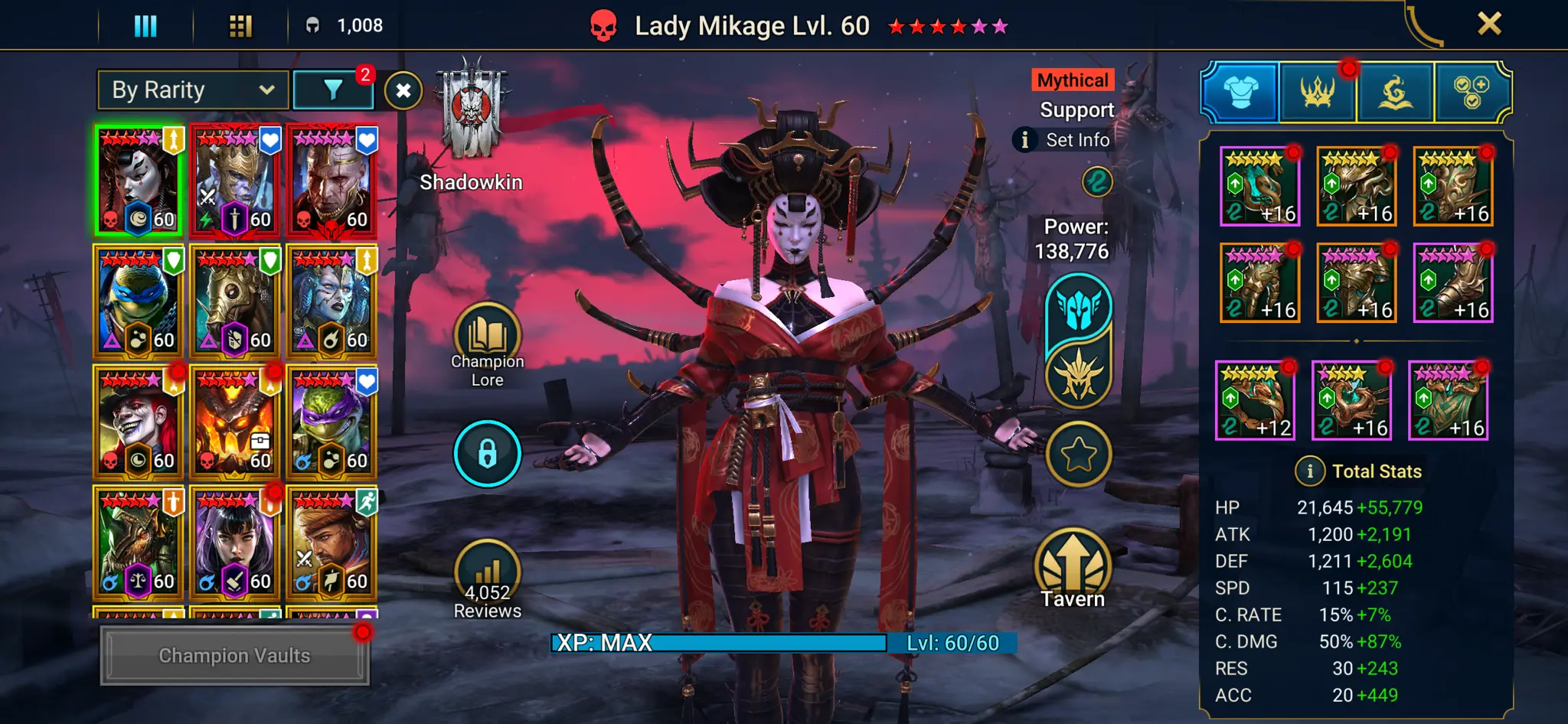 [3 Mythical Champions][12.68M] Lady Mikage,Gharol,Embrys + 122 LEGENDARY (Marius(5*),Leonardo(6*)+Donnie(5*)+Mich,Arb 402,Lamasu,Armanz,Gnut,Losan,Fyna,Nekmo,Maud,Shyek+Krokhad,Othorion,Hilvi,Wixwell...) + 1k UNM + 1k NM HYDRA + 25 SD/25 SHOGUN AUTO