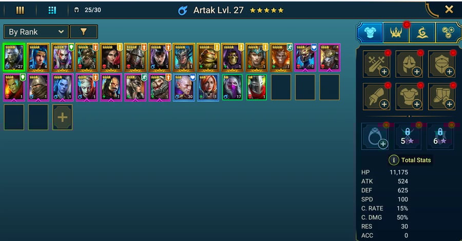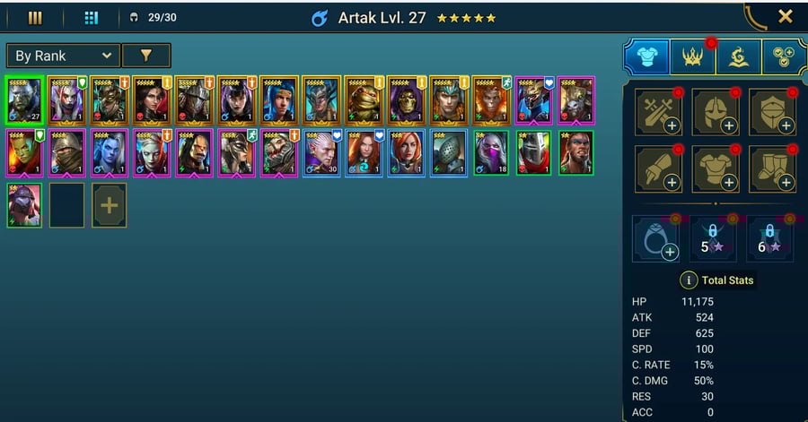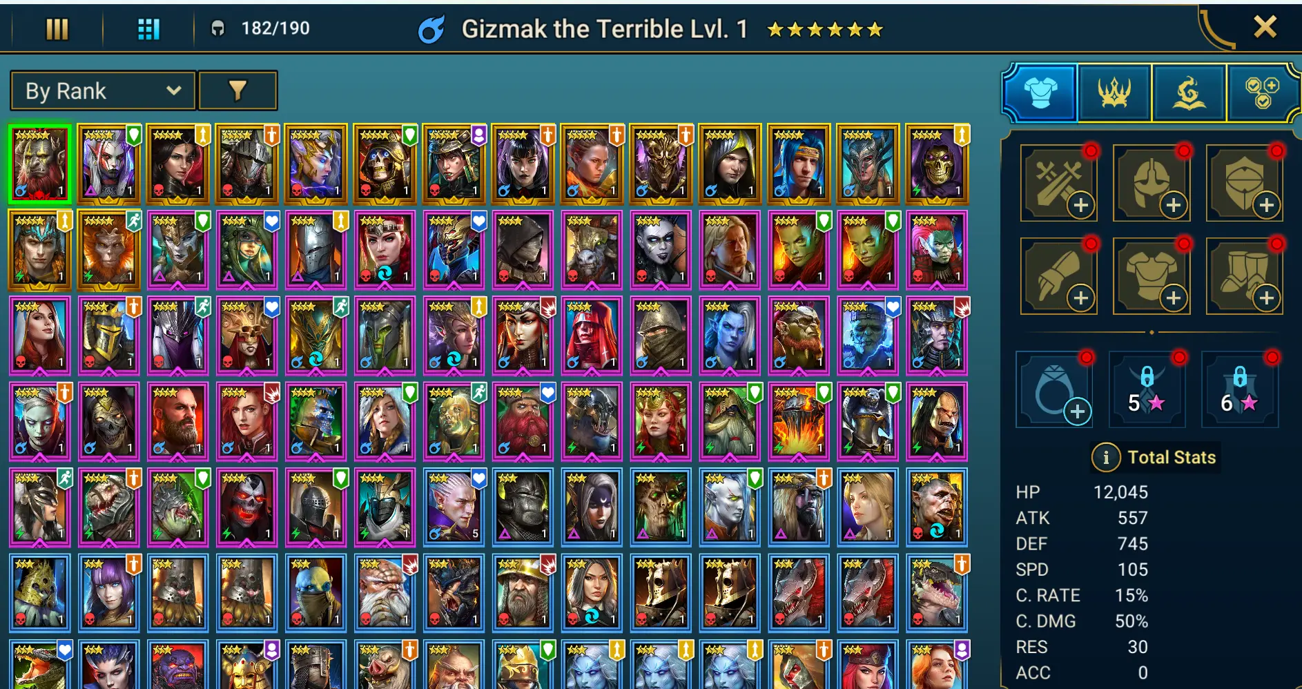 42k Energy ⸱ [Mythical Starter] Gizmak the Terrible ⸱ Harima ⸱ Demytha ⸱ Gaius ⸱ 12 free Legends ⸱ 5,9k Gems ⸱ 3 Sacred Shards