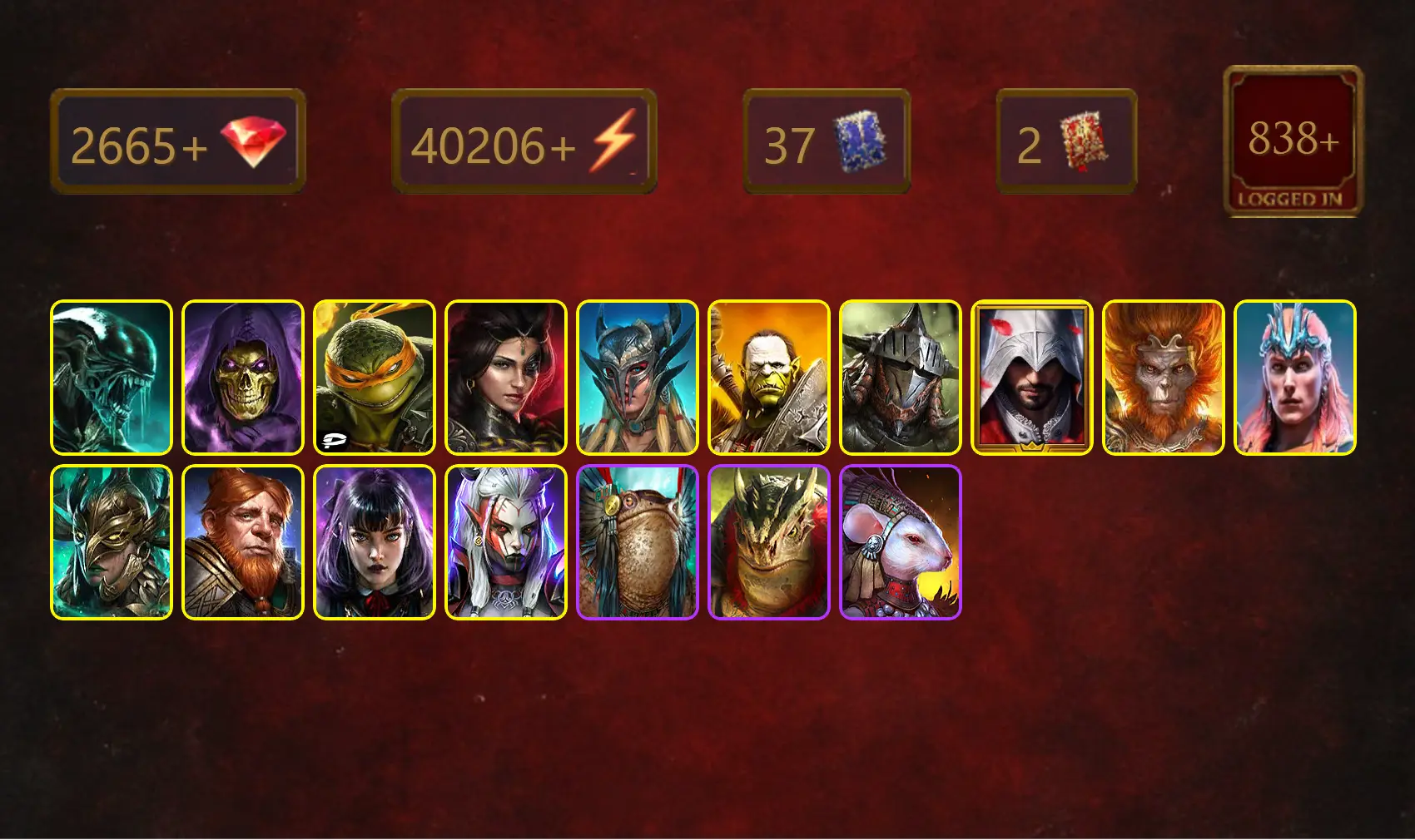 [STARTER]Gnut+Granyt Doorkeep+Xenomorph+Skeletor+Michelangelo+Adelyn+Scyl+Artak+Rathalos+Ezio Auditore+Harvest Jack+36Epics