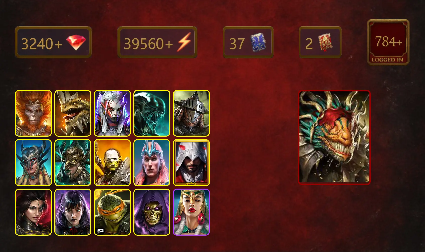 [STARTER]Lazarius+Legate Teox+Wukong+Visix+Xenomorph+Rathalos+Scyl+Leminisi the Gold-Wing+Artak+Loki+Ezio Auditore+38Epics