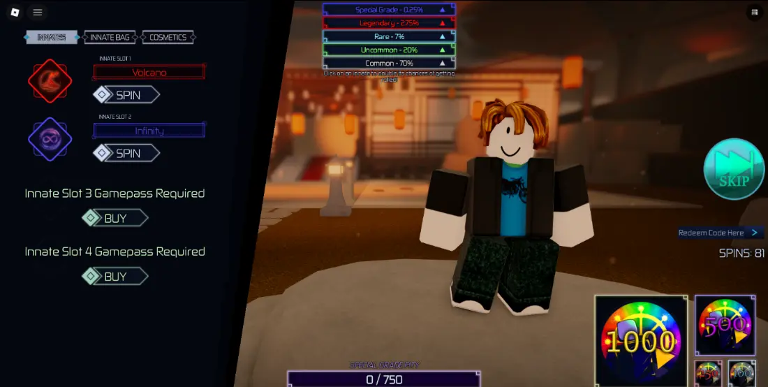 JUJUTSU INFINITE 🔥INFINITY+VOLCANO 🔥MAX 500 LVL🔥400 MASTERY🔥58 SPINS 🔥INSTANT