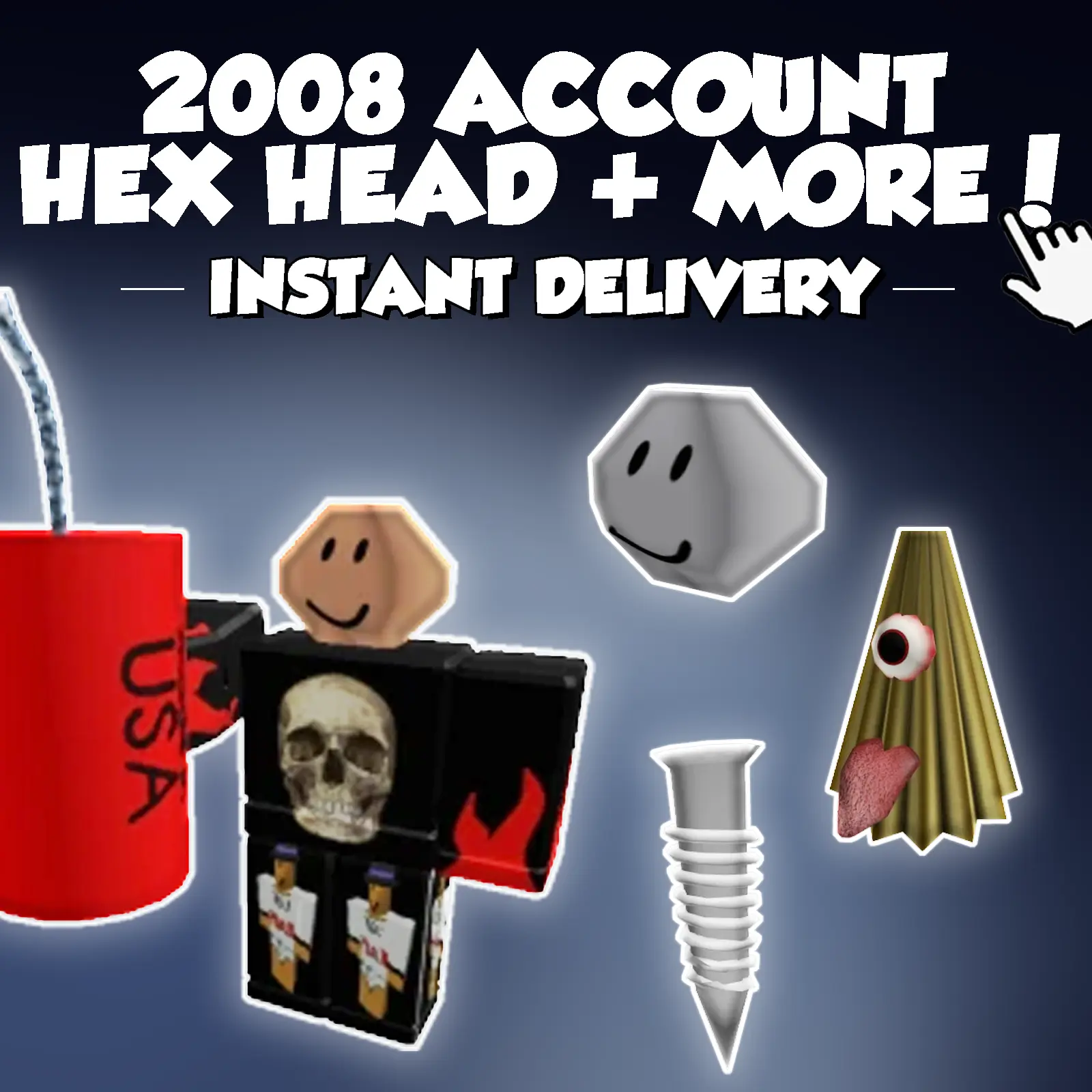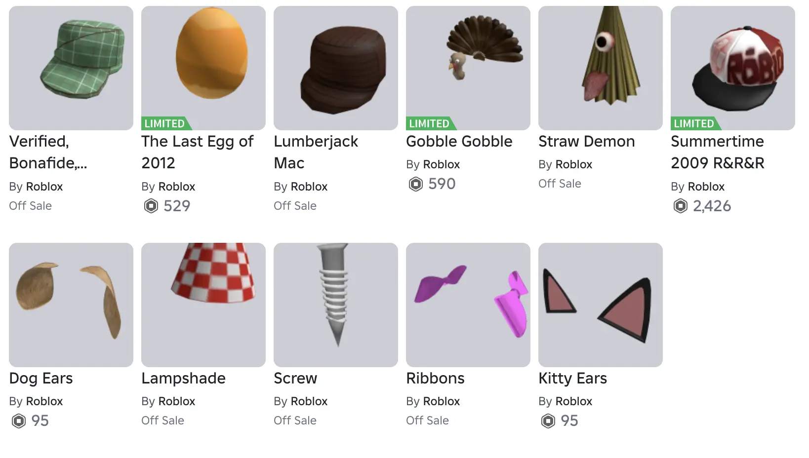ROBLOX 2008 Account 🔥 12+ Offsales & Limiteds 🔥 Hex Head + Straw Demon + Screw + Lampshade + Lumberjack Mac + Gobble Gobble + Ribbons + Headrow + R-80 + Shaggy + Summertime 2009 R&R&R | 600+ Robux SPENT | Email Access ✅