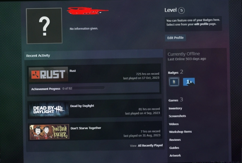 8 Years old Steam+5 LVL+RUST with 700+ AFK HOURS+Don't Starve Together Game+Full Access+Instant Delivery 24/7 #ACC-165483