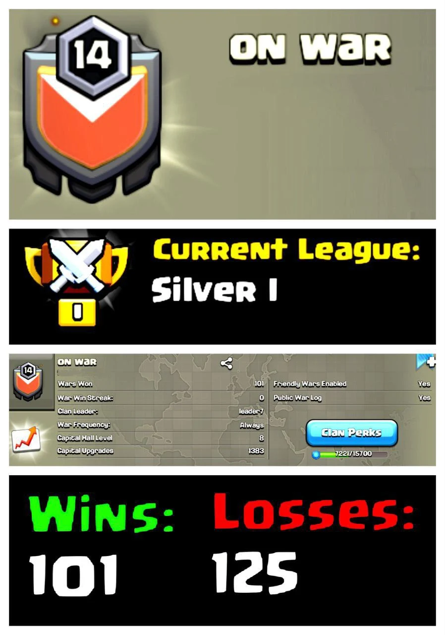 ❤🔥OP LEVEL 14 ENGLISH CLAN 🌲 OP NAME : ON WAR ✨LEAGUE : SILVER 1💥 CLAN CAPITAL : 9 🍀 WINS : 101 | LOSS : 125 😛 BEST CLAN BUY NOW 💘 FAST DELIVERY🚚