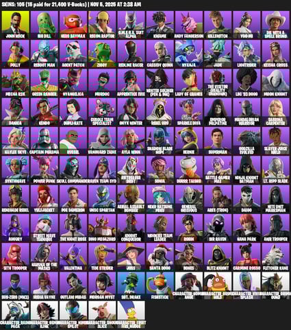[PC/PSN/XBOX] 105 skins | Account Level 1282 | 113 emotes | 63 gliders | 128 pickaxes | ares | Skin total spent v-bucks 40100