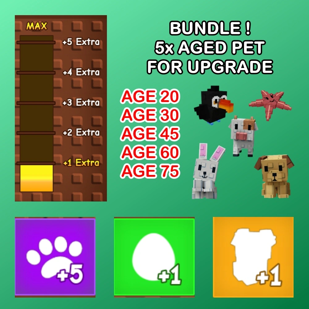 BUNDLE SET PET UPGRADE AGE 20 30 45 60 75 PET (SLOT PET / EGG / INVENTORY)