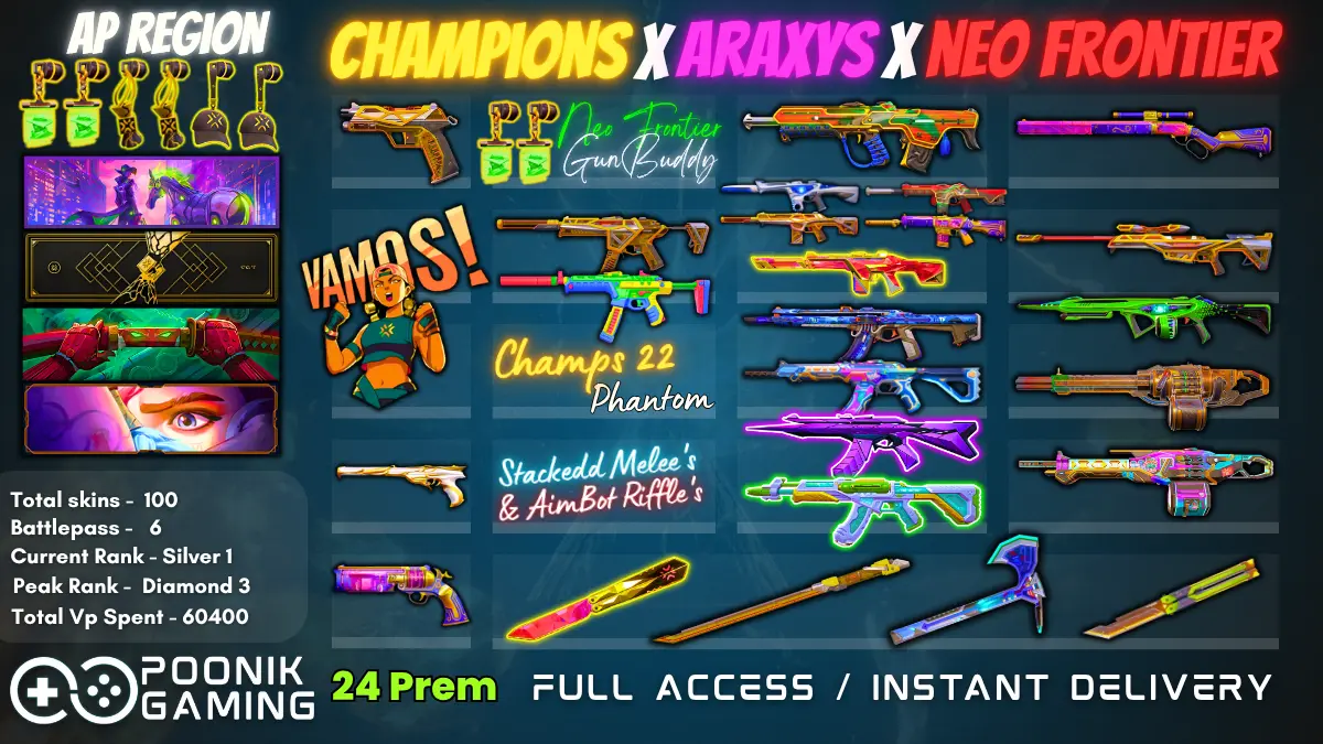🎯 100 SKINS ⸱ AP REGION | 📹 VIDEO: imgur.com/a/4q9wWeW | CHAMPIONS 2022 BUNDLE, RGX, PRELUDE TO CHAOS, 6 BPs & MORE! [V536]