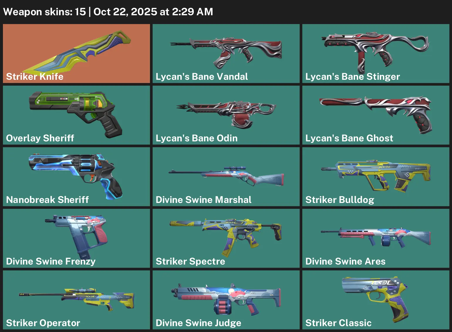 AP | 15 Skins | exp SILVER 2 | Lycan's Bane Vandal | Striker Operator | Divine Swine Frenzy | Divine Swine Marshal | Striker Classic | S4G