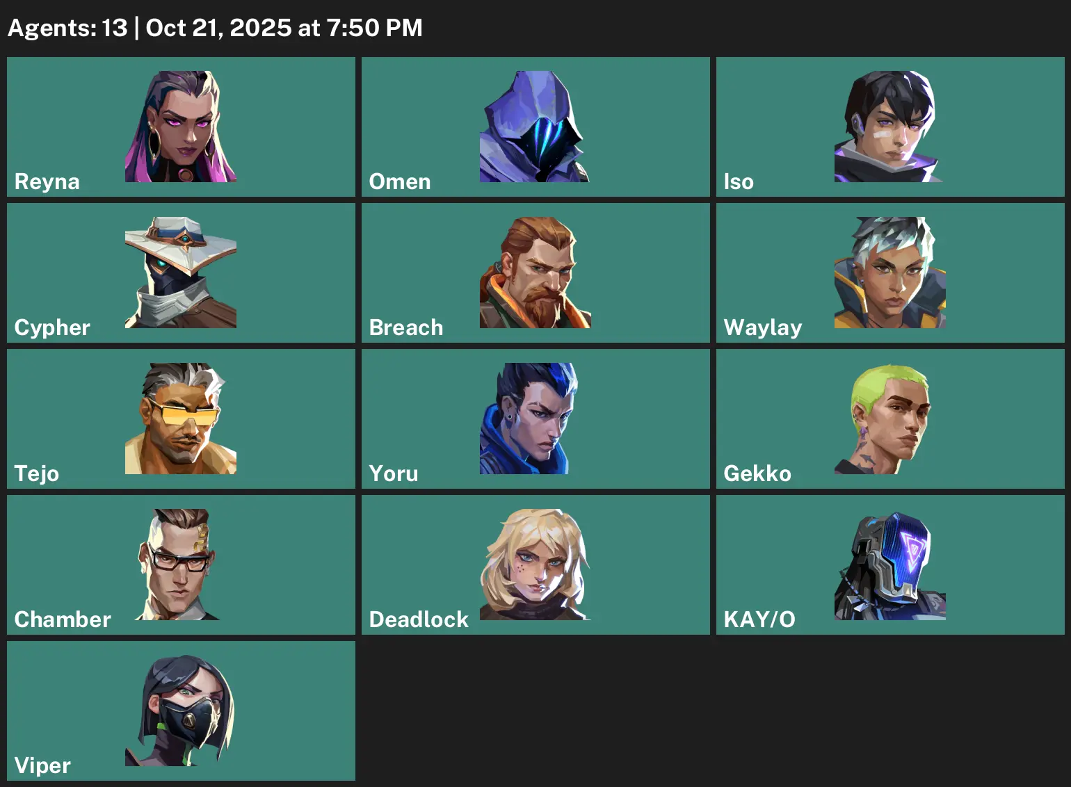 🥜 AP 🐬 Bronze 3 🍀 15 Skins 🤔 172 VP 😶 13 Agents 📕 Value: 1775 VP 🔭 Hieroscape Blades 🫁 Ion Vandal ☁️ Hieroscape Ares 🤕 Hieroscape Bulldog 🫛 Hieroscape Frenzy 🛶 Hieroscape Phantom