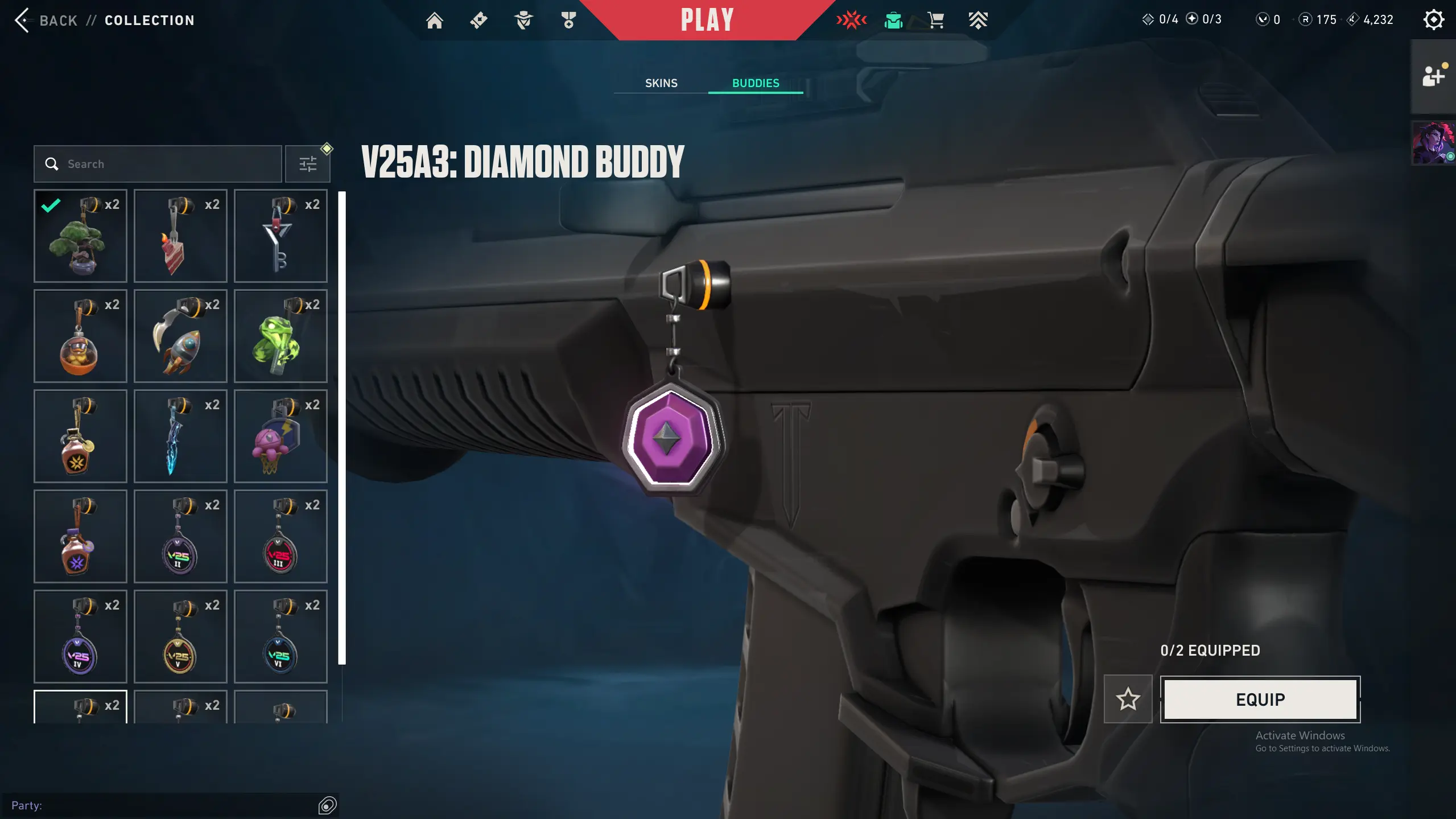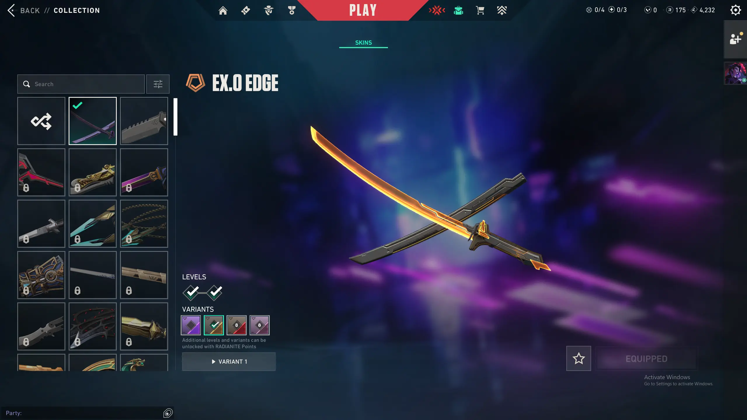 🌍 AP ⚔️ EX.O Edge katana 💎 Diamond Buddy 🔵 Platinum Buddy ⚡Level 43 ✨ 175 Radianite Points 🥷 14 Agents Unlocked 🔗 Mail Changeable
