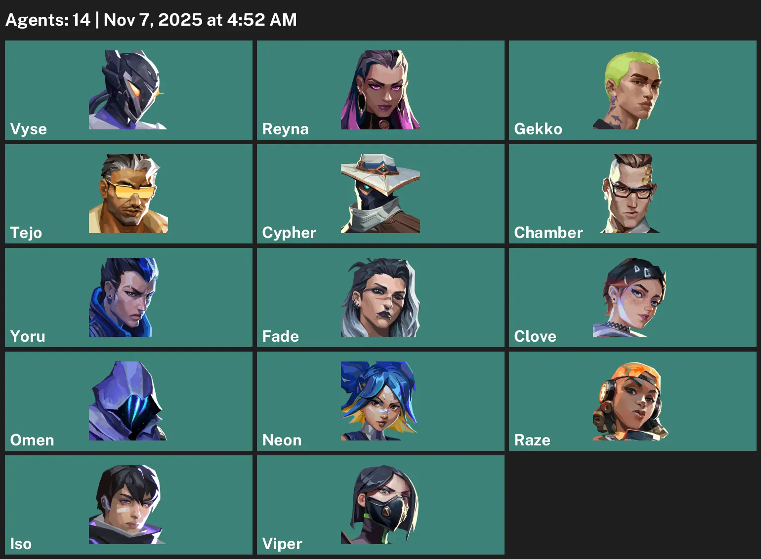 🥁 AP 🫏 Unranked 👊 2 Skins 🛼 19 VP 🩰 14 Agents 🍝 Value: 2550 VP 😸 Equilibrium 🌭 Retrowave Sheriff