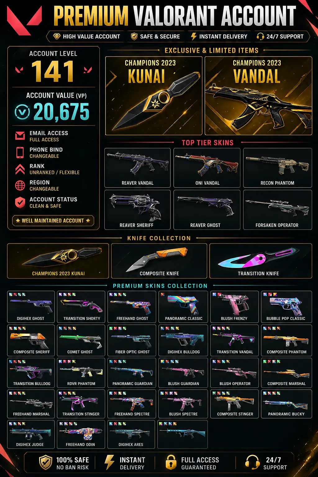 CHAMPIONS KUNAI + VANDAL 🔪 | REAVER SET | 24/7 SUPPORT 🔥