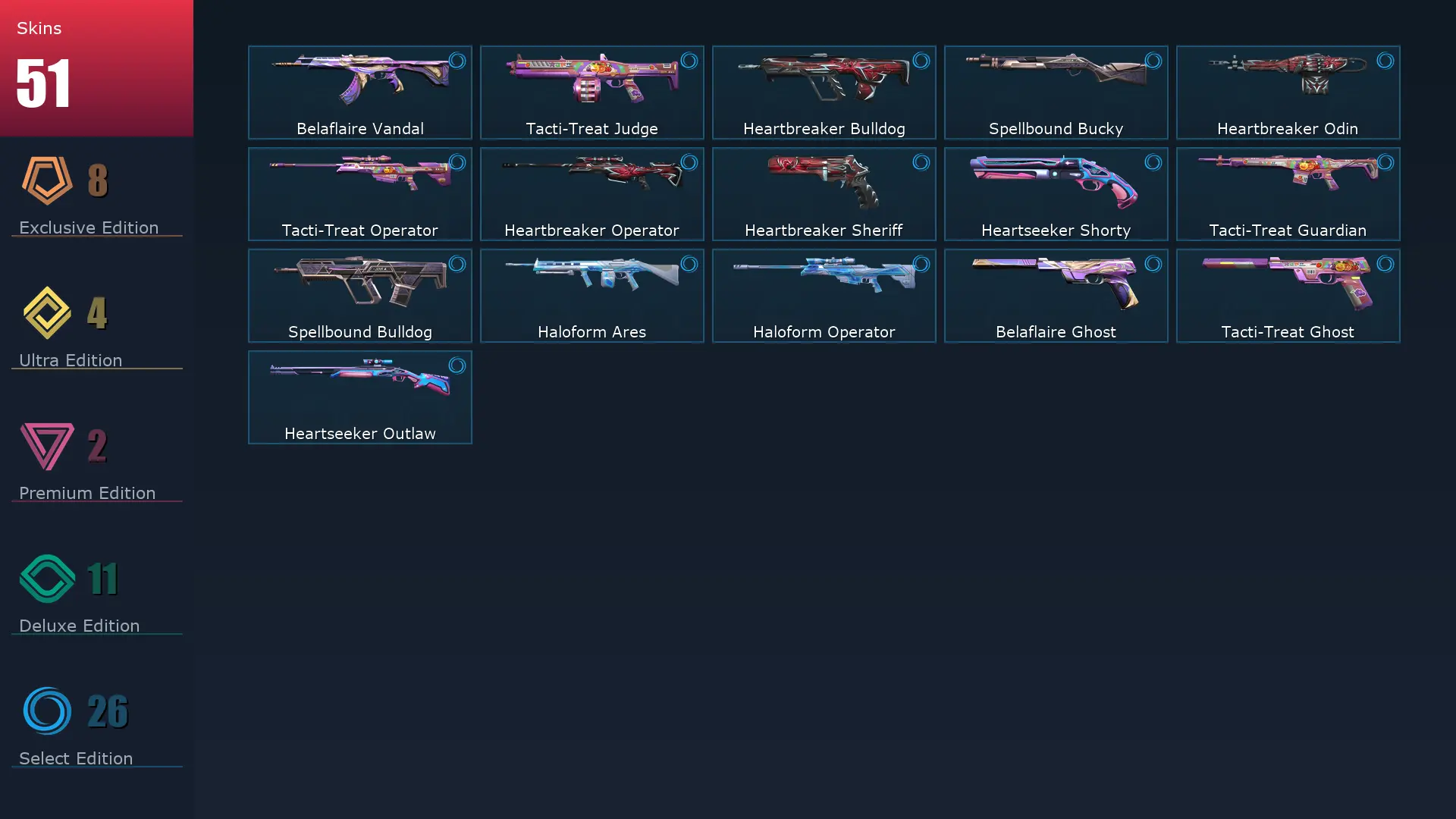 EU ⚗️ 51 Skins 🎟 Diamond 1 😵 29 Agents 🫐 144 Level ✏️ ORA by OneTap Phantom 💫 ORA by OneTap Sheriff 🎏 ORA by OneTap Knife 🍝 BlastX Phantom 🧁 ORA by OneTap Operator ✨ CYRAX Guardian 🎓 Sovereign Ghost 🚘 Glitchpop Vandal