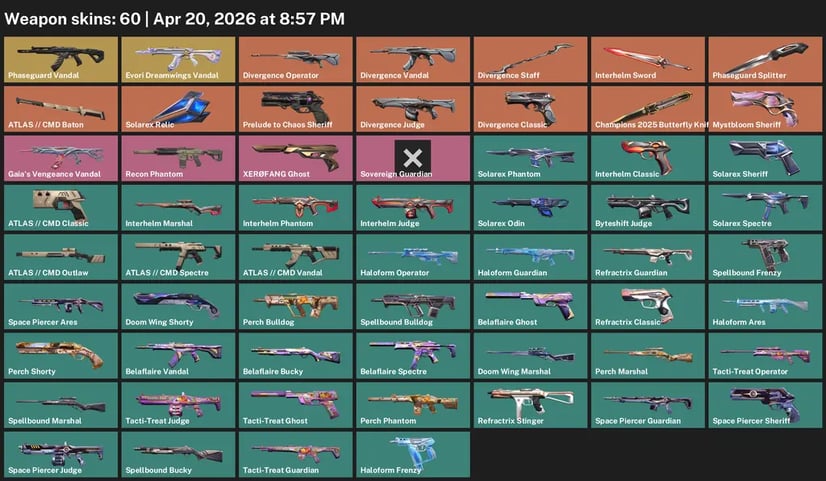 EU | 89 skins + 6 knives + 35275 VP (Spent) | Protocol 781-A Phantom | Elderflame Vandal | XERØFANG Knife | RGX 11z Pro Firefly | Neo Frontier Sheriff | Outpost Melee | Songsteel | Glitchpop Phantom | Comet Sword | EX.O Edge