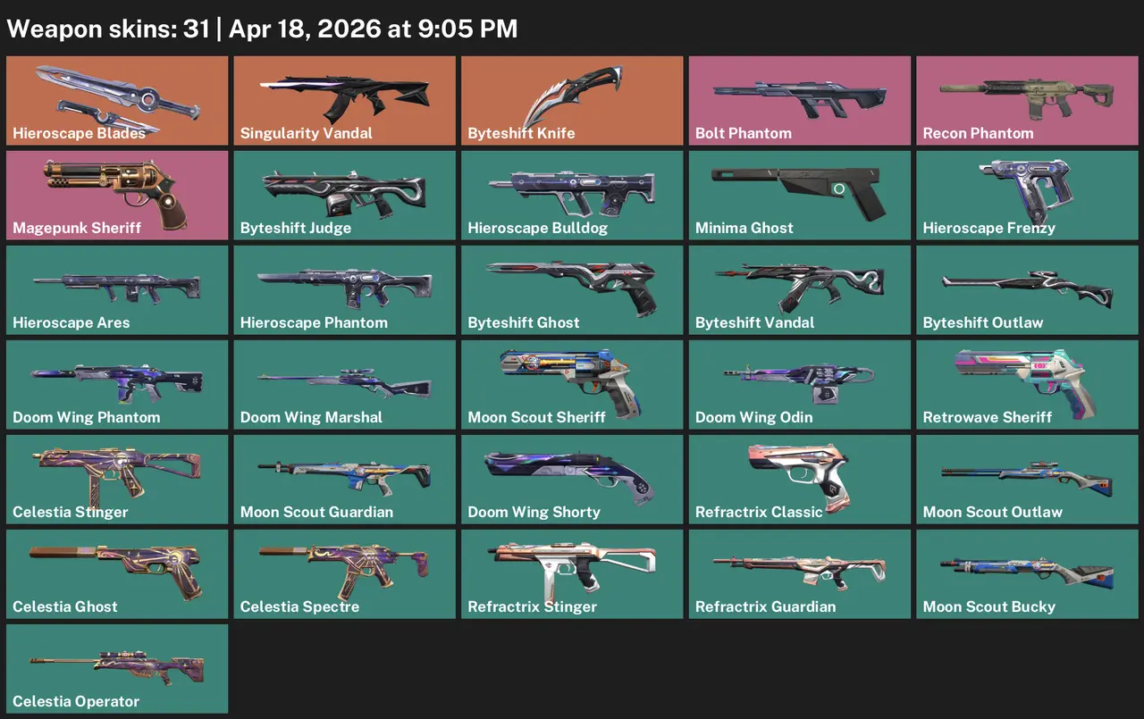 [EU] 🔥 | 31 Skins • Singularity Vandal + Recon Phantom + Bolt Phantom + Byteshift Knife • ≈8,775 VP Inventory Value • Full Access