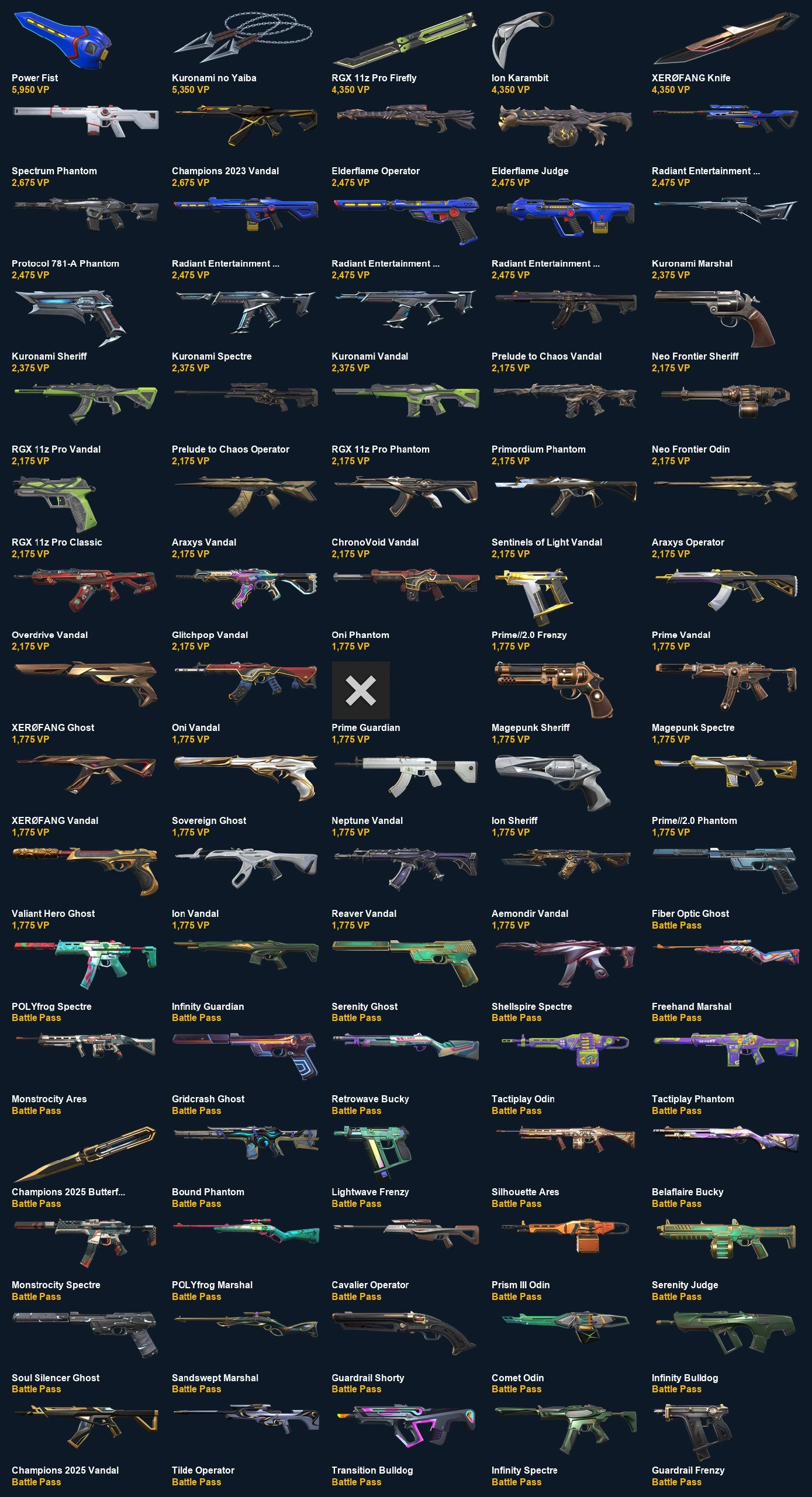 [EU] Radiant Entertainment System Collection + Kuronami Collection + Xerogan Collection + Champions 2023 Vandal + RGX Firefly Vandal + Phantom + Protocol Phantom
