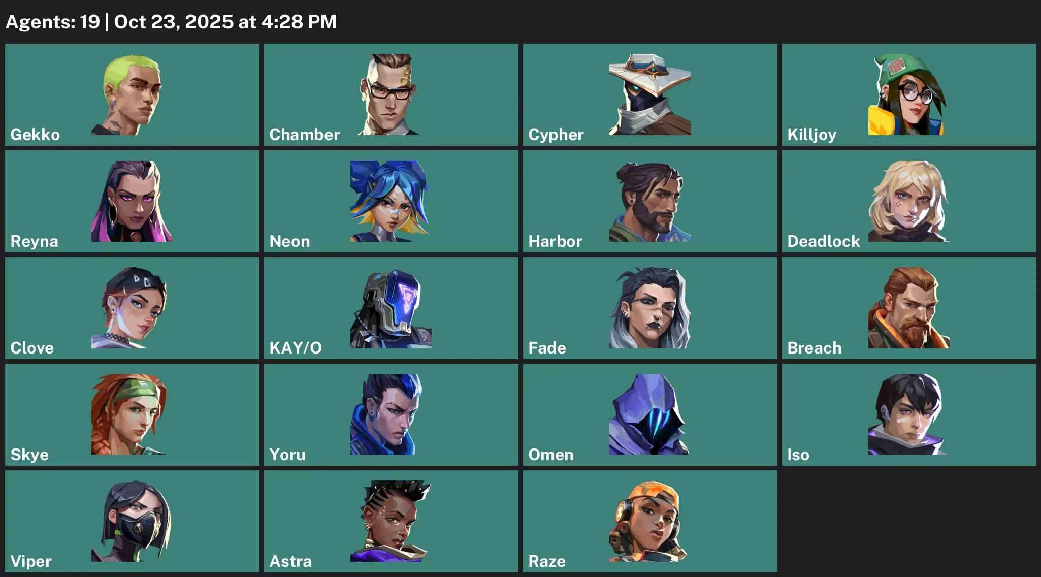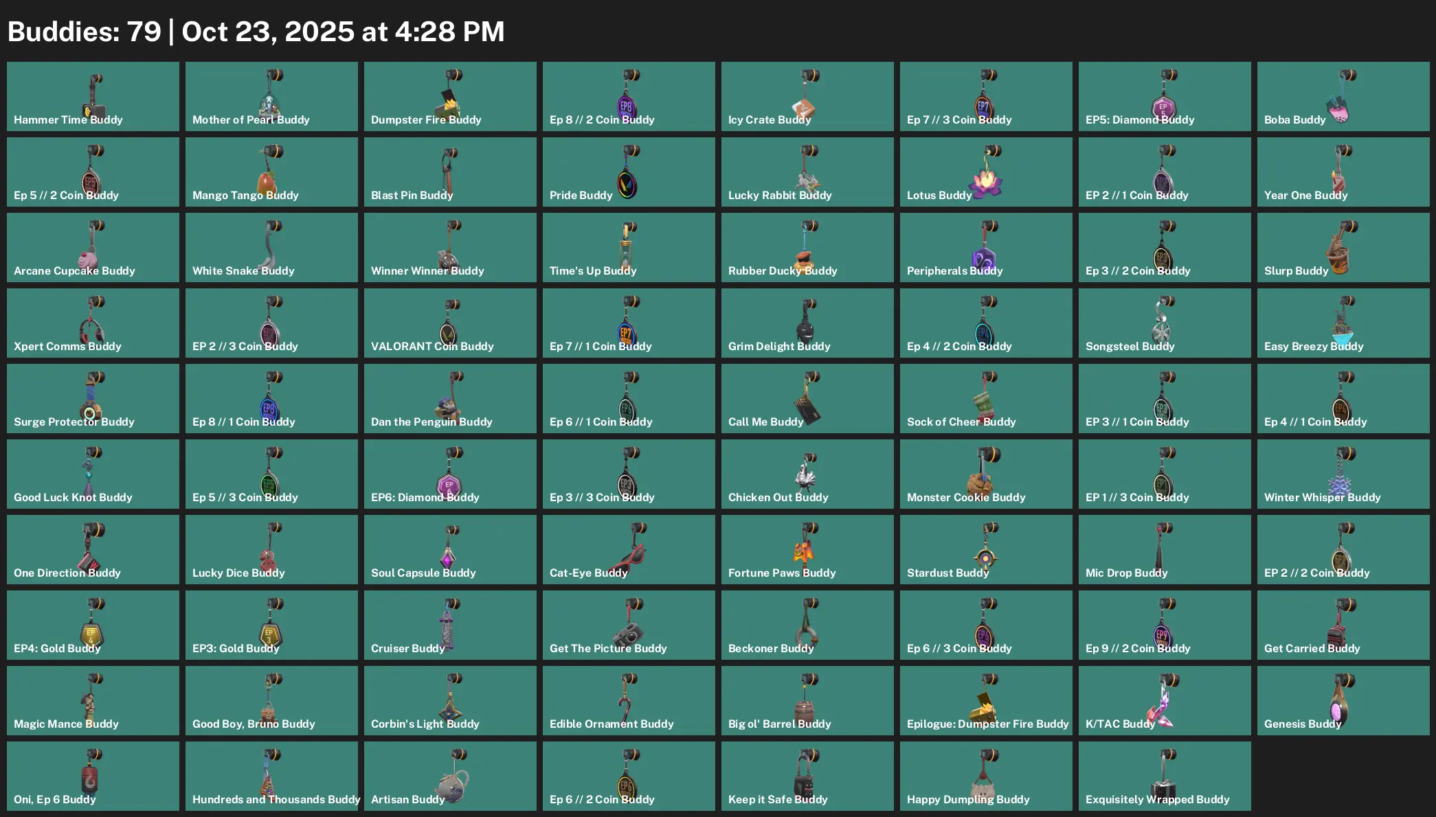 💀 LA 👡 Unranked 🎁 60 Skins 🎑 277 VP 🦣 19 Agents ⛵️ Value: 43665 VP 🌅 Champions 2021 Karambit 🎓 VCT LOCK//IN Misericórdia 🗑 Onimaru Kunitsuna 🥋 Prime Axe 🏨 Genesis Arc 🩻 Elderflame Vandal