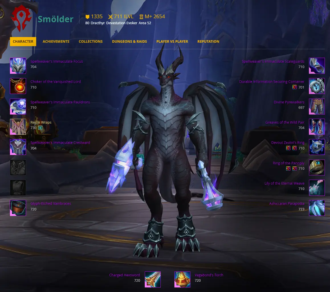 ⚡ Level 80 Dracathyr Evoker⚡ US ⚡ 711 iLvl ⚡ 2654 M+ Score ⚡Ready for High Keys