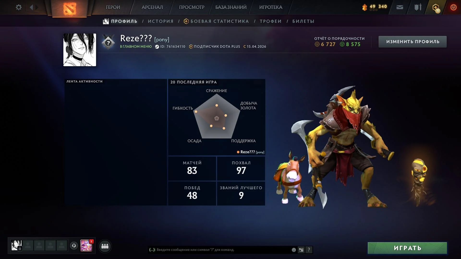 DO668 Main account 42.8/100 hours 8.575 integrity Dota+