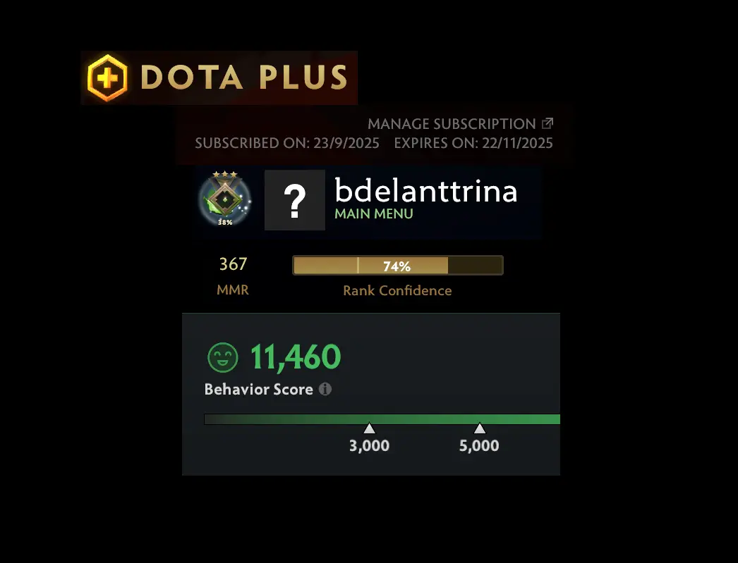 Herald 3 (38%) 🔥 367 MMR + 11460 Behavior 🔥 DOTA PLUS🔥