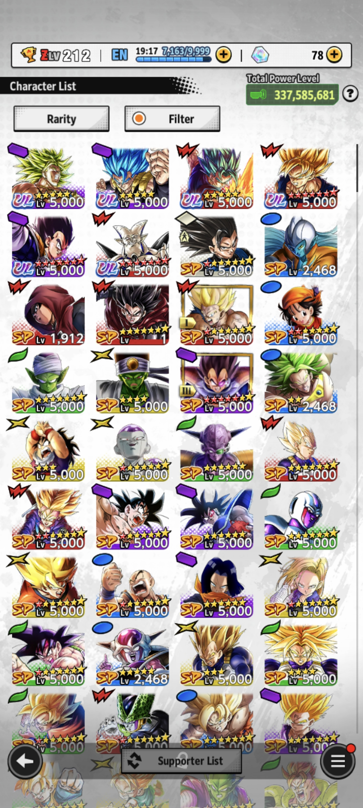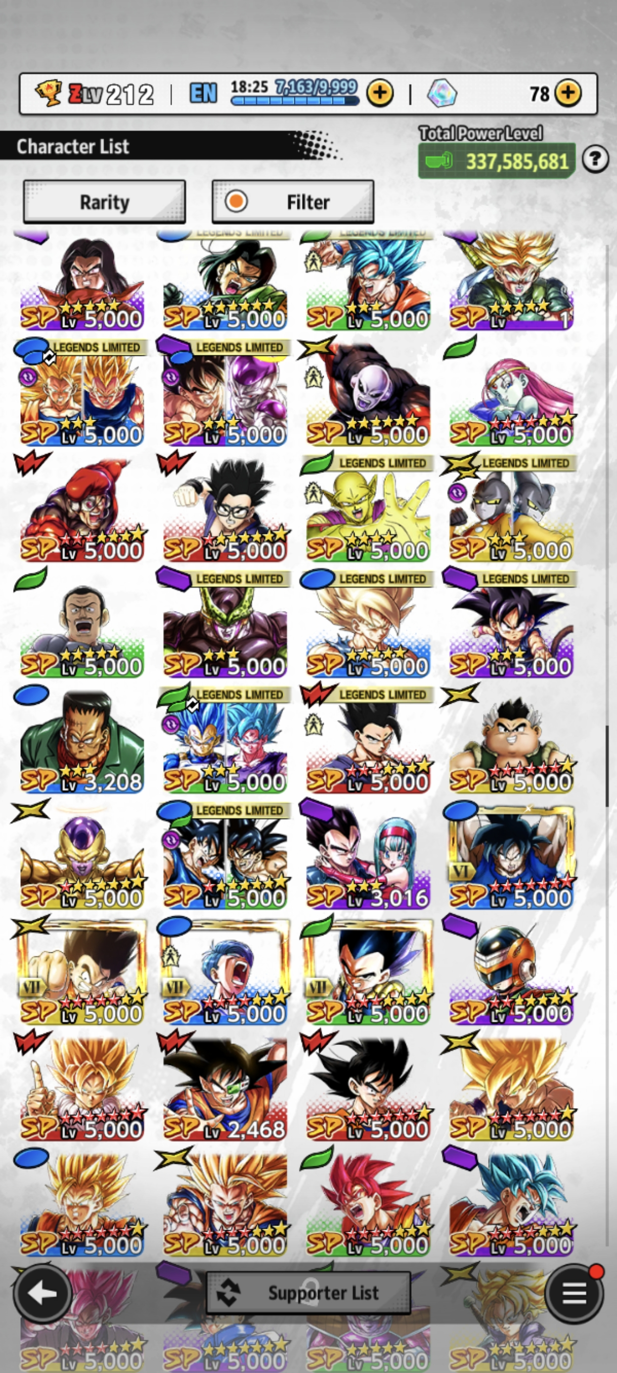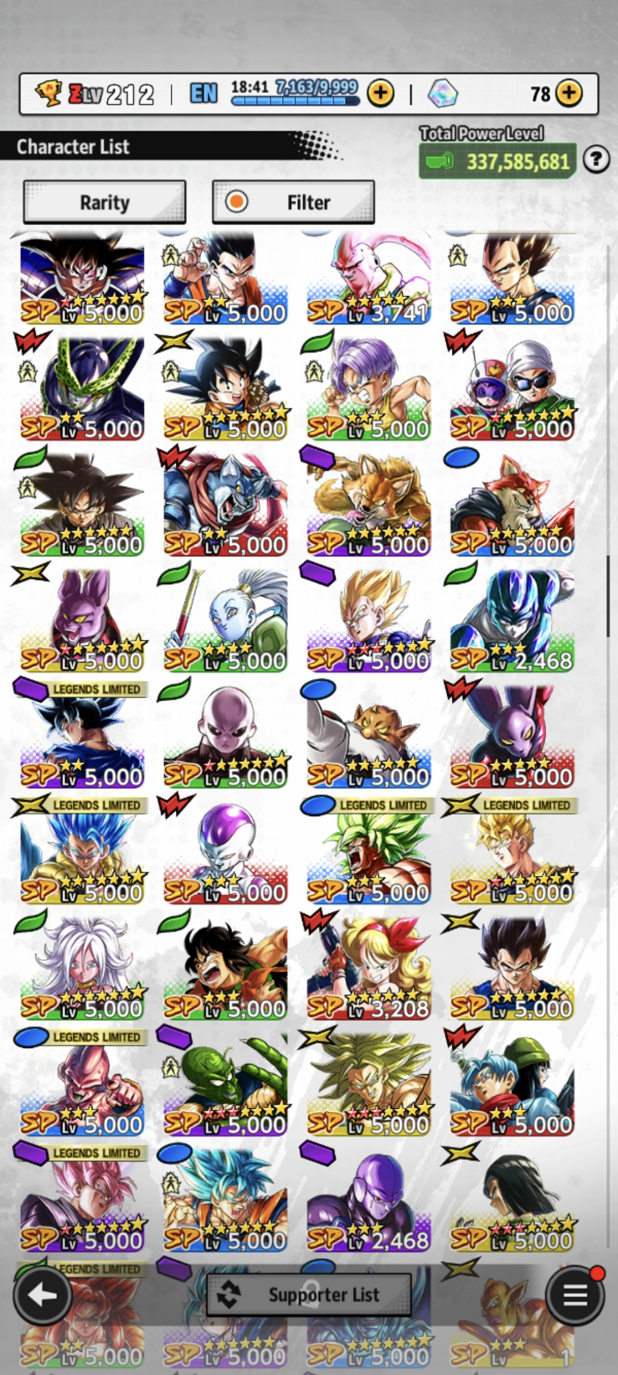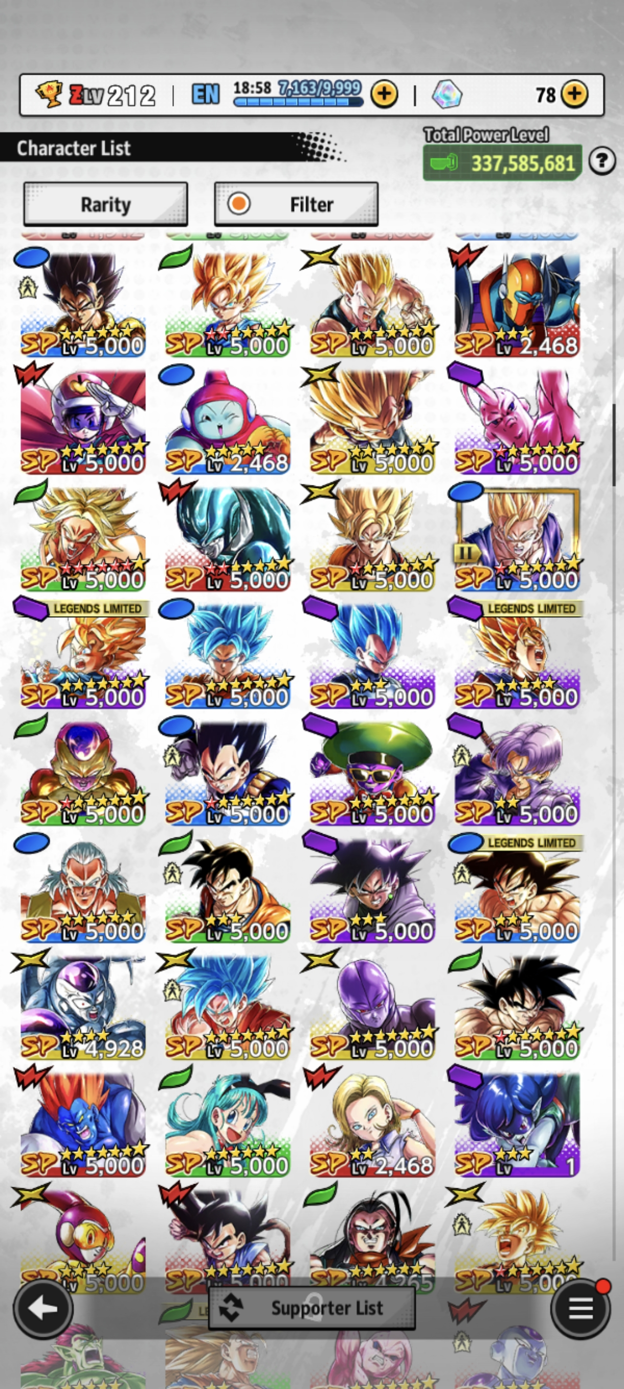 ✨ 21 Legend Limited ✨ 6 Ultra Legend ✨ 212 LVL ✨ 268 SP ✨ LL Half-Corrupted Fusion Zamasu ✨ LL Bardock etc.