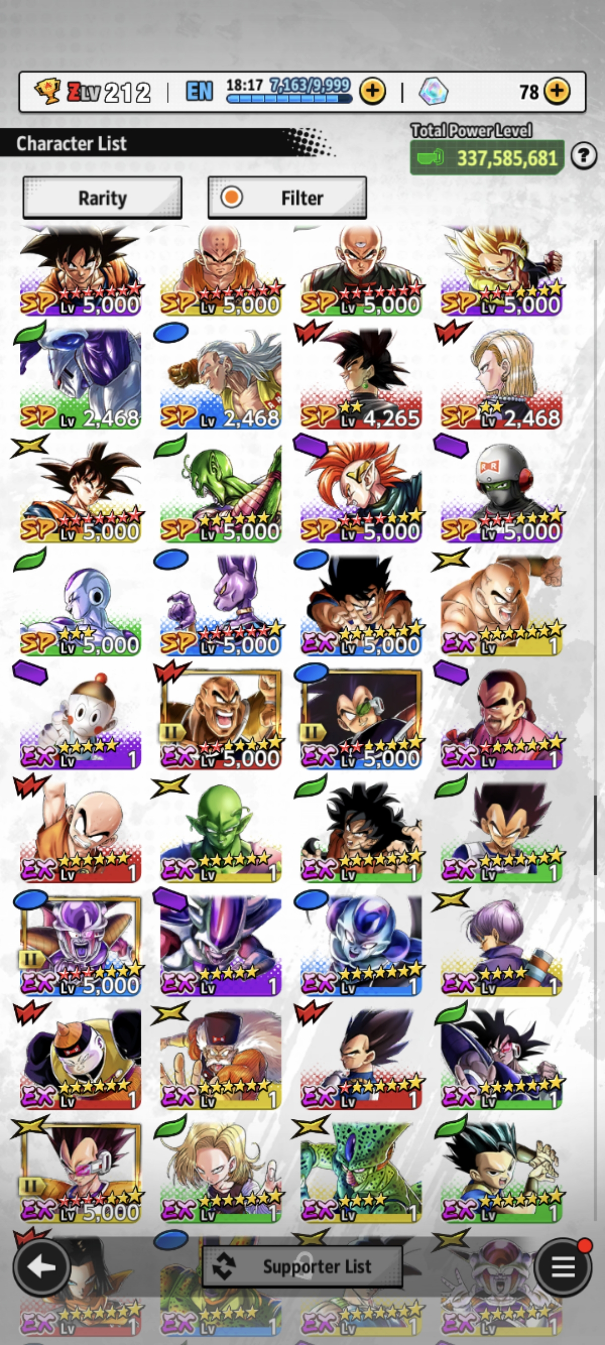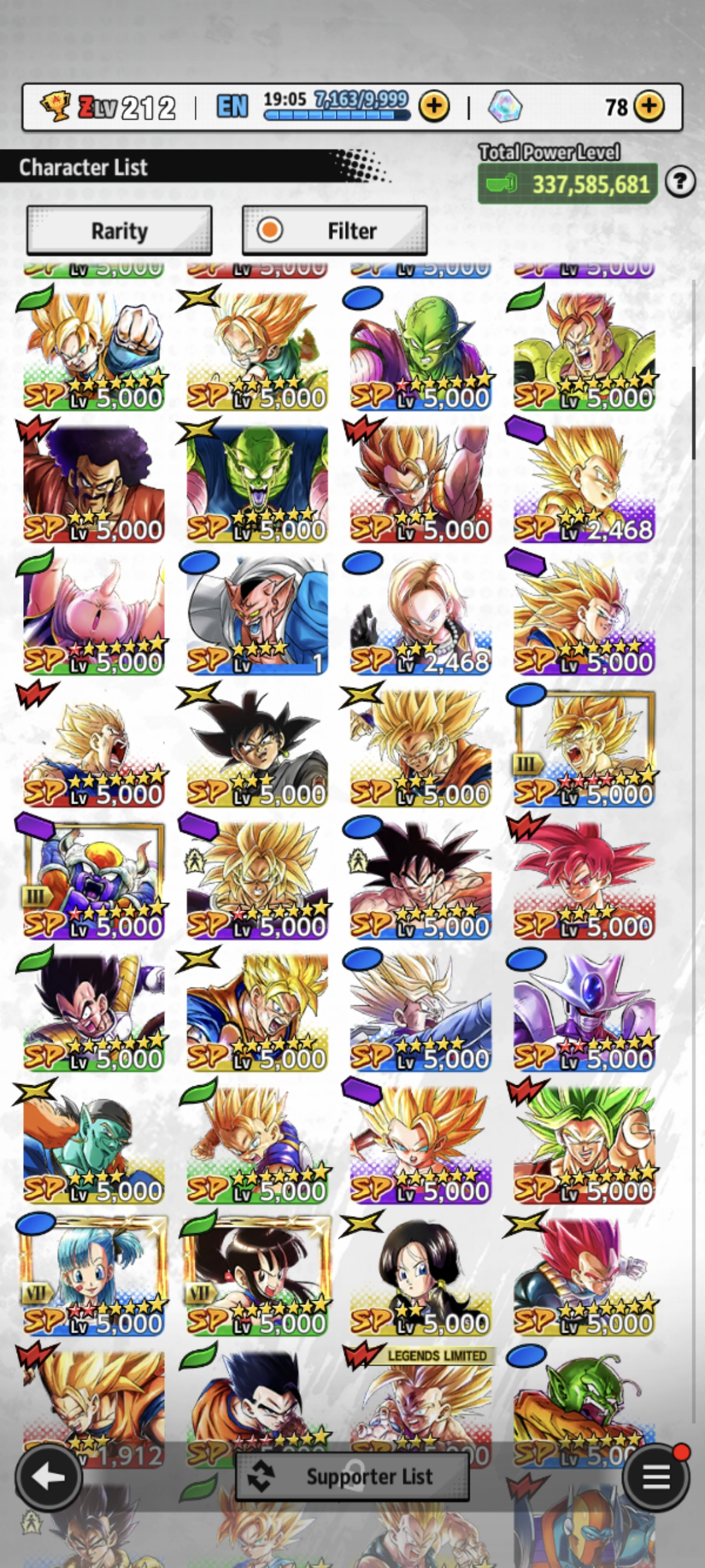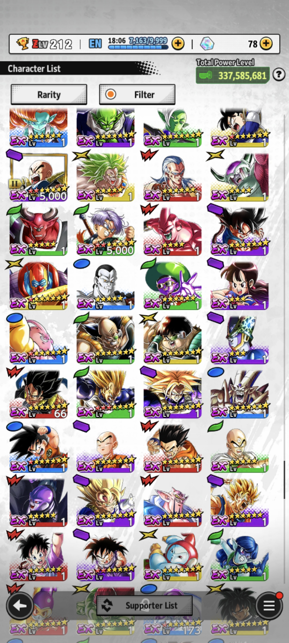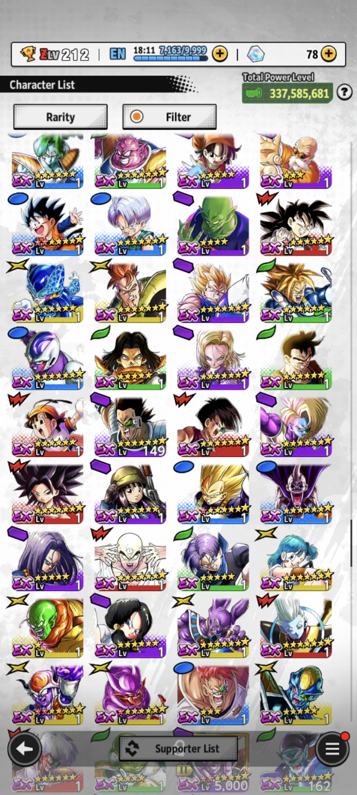 ✨ 21 Legend Limited ✨ 6 Ultra Legend ✨ 212 LVL ✨ 268 SP ✨ LL Half-Corrupted Fusion Zamasu ✨ LL Bardock etc.