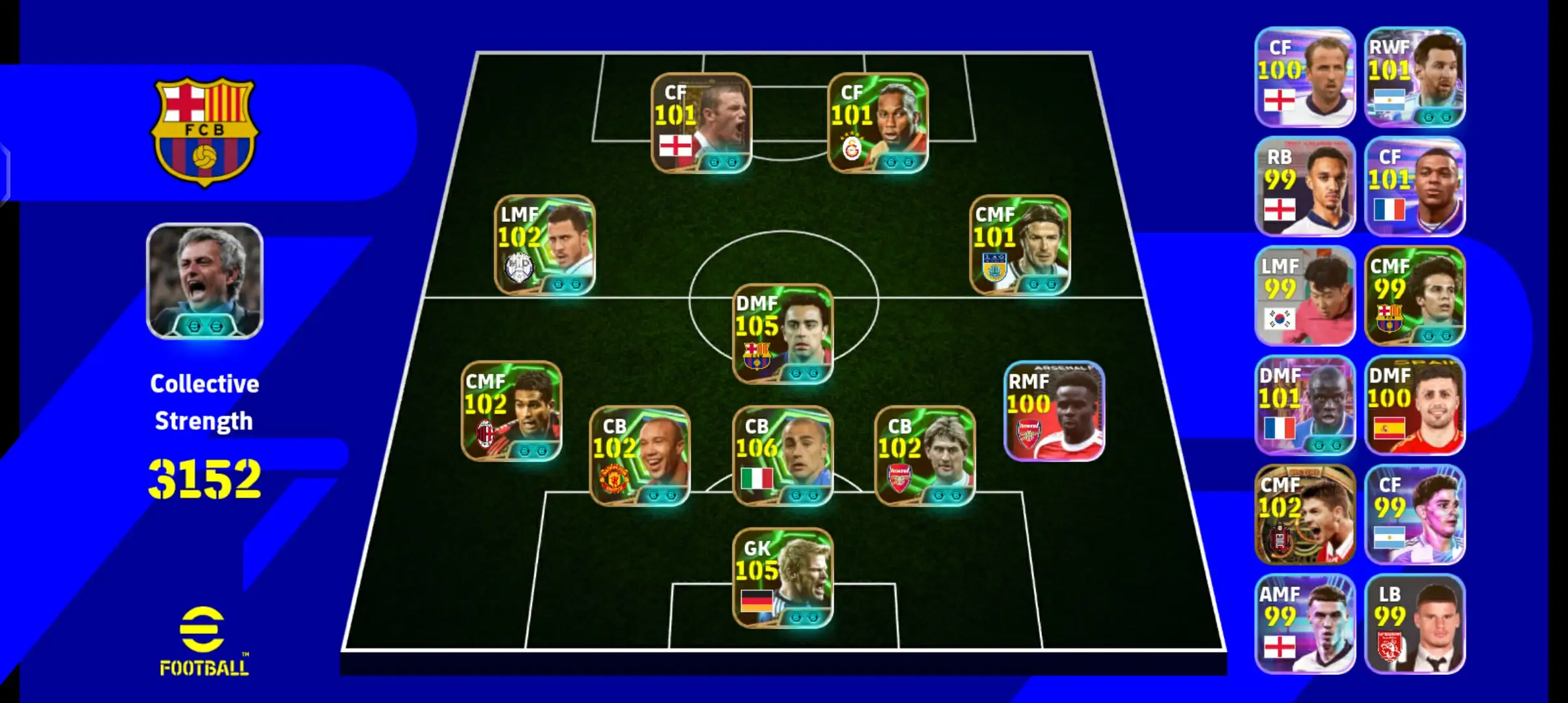 🚦Paid Manager Jose Mourinho🚦 Rooney🚦Beckham🚦Mikael Silvestre🚦Big Time Gerrard🚦Cannavaro🚦Xabi🚦Serginho🚦Tony Adams🚦GK Oliver Kahn🚦⚡Strength 3152⚡🚦123 players with Balance Team🚦Only Konami🚦
