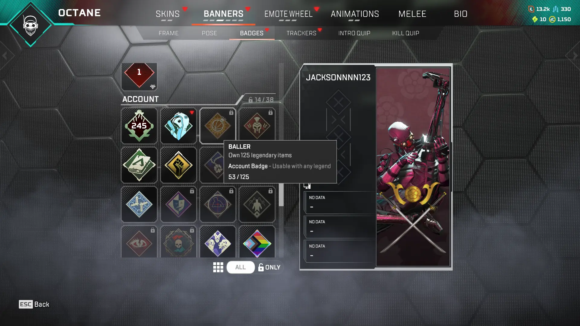 Apex Legends[PC] 245 lvl/ 43 Legendary/ P2020 Reactive Skin/ 1150 Coin/ mssh702