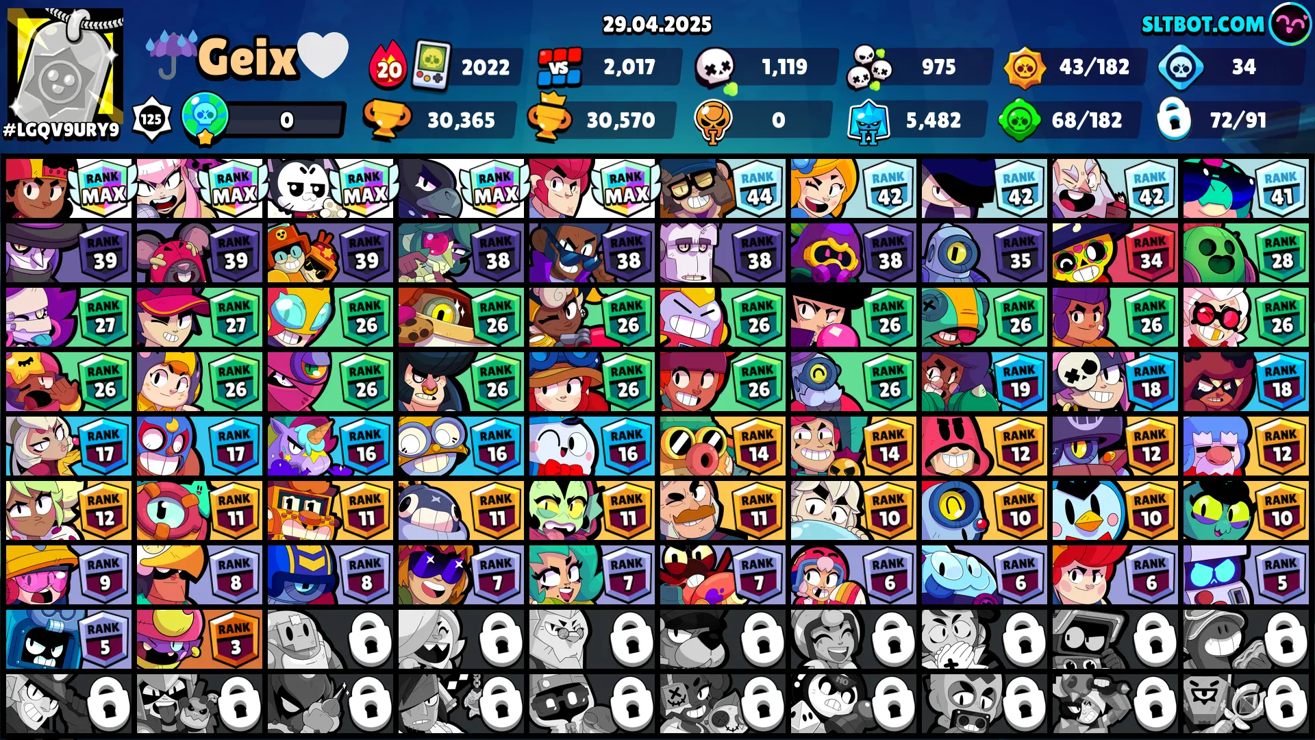 103 SKINS 🩵 30.365 TROPHIES 🏆 72 BRAWLERS 🧸 1 HYPERCHARGED 🩸 2 MAX BRAWLERS 🩷 COACH MIKE 🩵 OMEGA BOX DARRYL 🩵 COCO ROSA 🩵 PEROSCOPE PEARL 🩵 ROBO SPIKE 🩵 TANUKE JESSIE 🎀