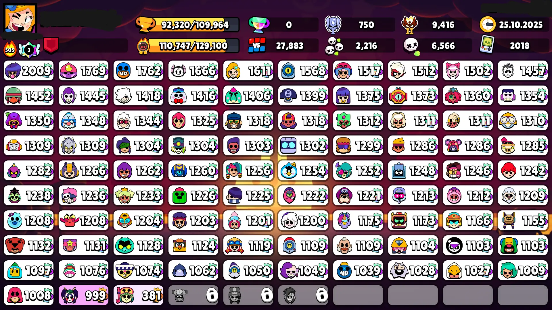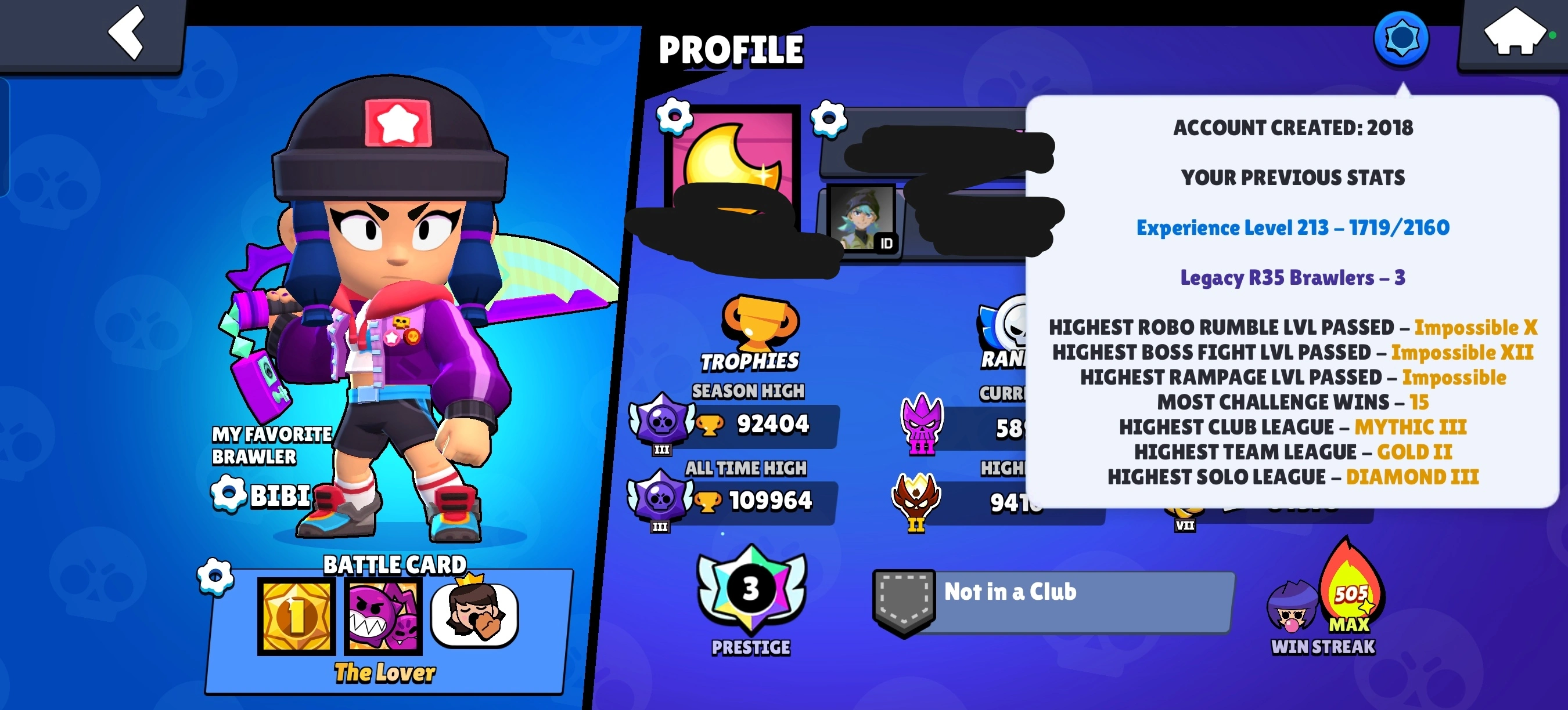 ♦️ 109k Trophies ♦️ Masters 2 ♦️ All Times Masters ♦️ Meteoric Fame 2 ♦️ 3x Legacy r35s ♦️ 3x Prestiges ♦️ Many OG Skins ♦️ Fully Maxed ♦️ 27k Wins 3v3 ♦️ #rico