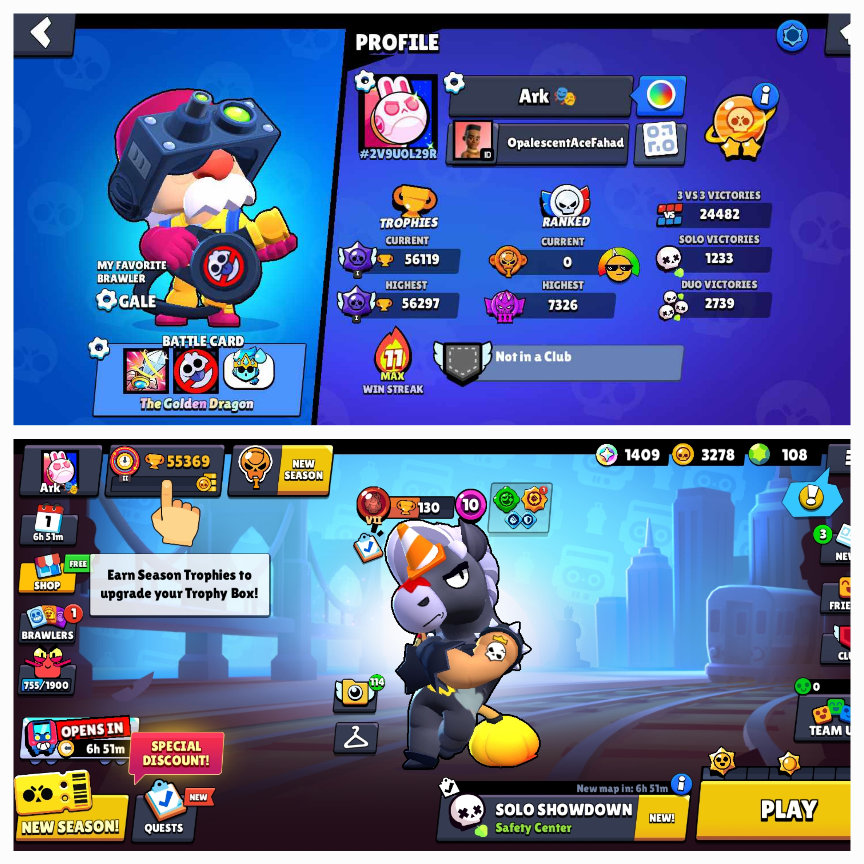 170 PREMIUM SKINS 🎭308 Level ⚡ 56K TROPHY 🏆 56-MAX { 29 HYPERCHARGED } ⚡48 Max Type Rank ⚡ 81 BRAWLER 🥇 5 LEGENDARY, MYTHIC SKINS 🎭 545 PINS 🎭 [ ANDROID / IOS ] ✅ 100% SAFE ✅ INSTANT DELIVERY