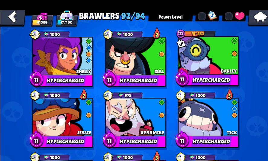 174 SKINS ⭐ 81.100 TROPHY ⭐ 92 BRAWLERS ⭐ 45 MAX ⭐ 34 HYPERCHARGED ⭐ TRICY JANET ⭐ GUARD RICO ⭐ CESAR SAM ⭐ KONG SURGE ⭐ OCTO FANG ⭐ SPIKE ⭐ LEGENDARY ⭐ LEON