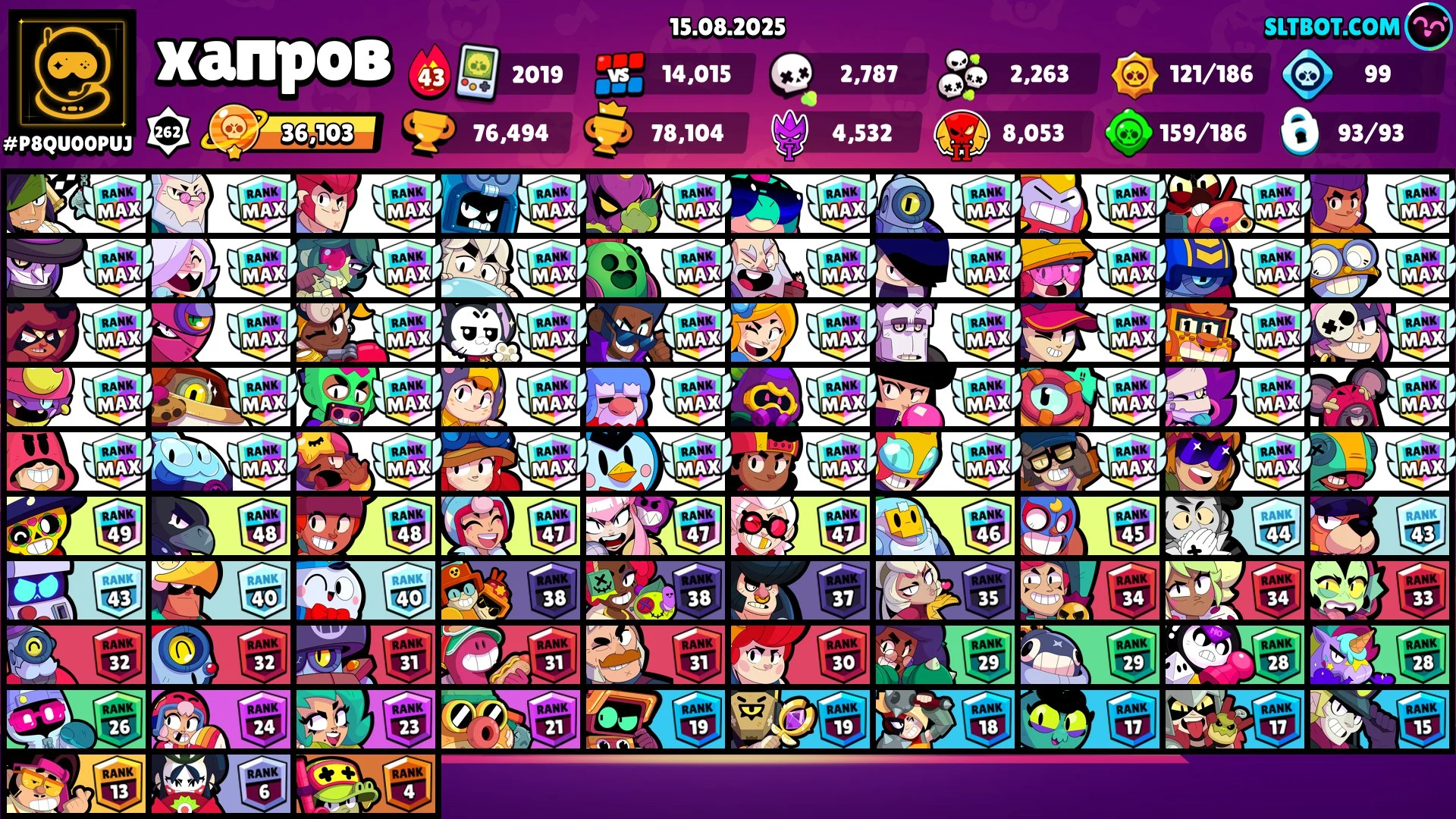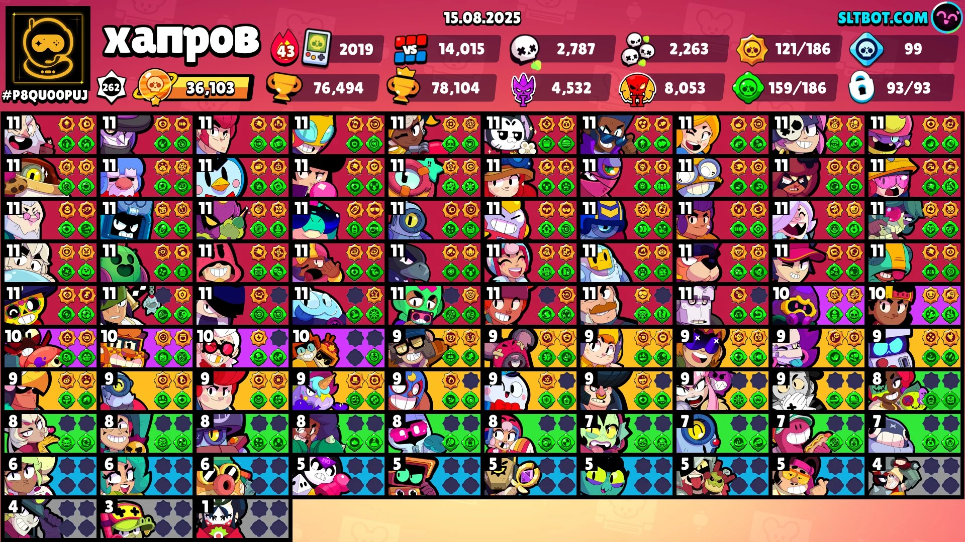 20 TITLES ⭐ 253 SKINS ⭐ 76.500 TROPHY ⭐ 93 BRAWLERS ⭐ 48 MAX ⭐ 41 HYPERCHARGED ⭐ MECHA MORTIS ⭐ CURSED KENJI ⭐ FINAL BOSS RICO ⭐ DIY SURGE ⭐ OCTO FANG ⭐ DARK LORD SPIKE ⭐ LEGENDARY ⭐ LEON