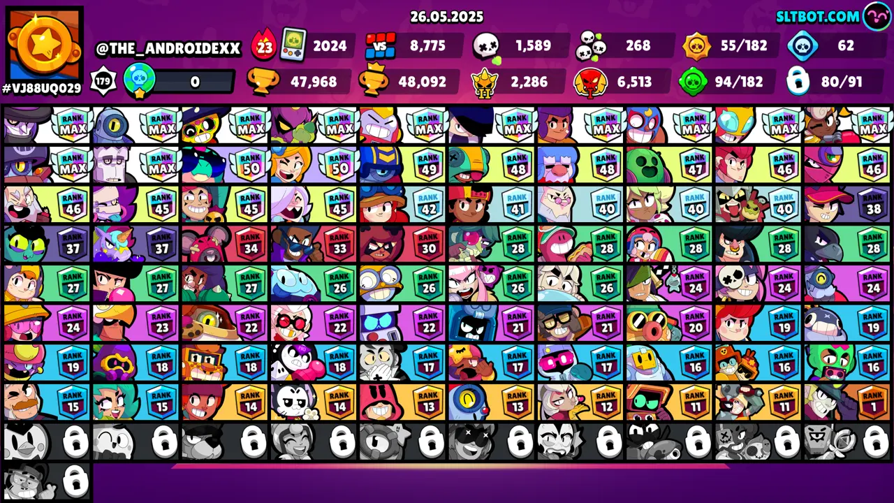 🔥 [22 Max Brawlers] 🔥 157 Skins 🍭 34.577 Cups 🏆 20 Hypercharged 🍭2 Max Powers 🍭 16 Nice Titles🍭 80/91 Brawlers 🐼 FULL ACCESS & GUARANTEE [F1379]