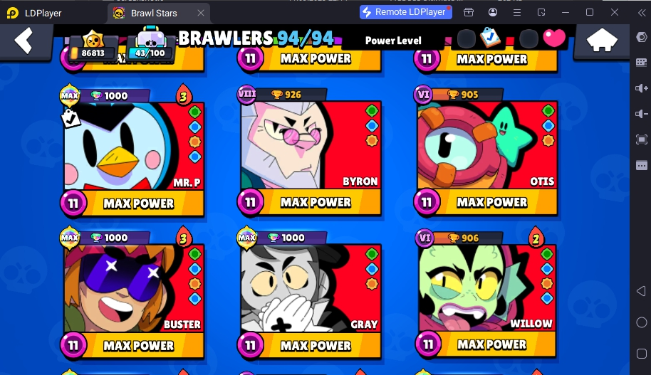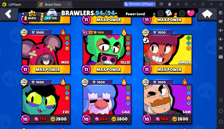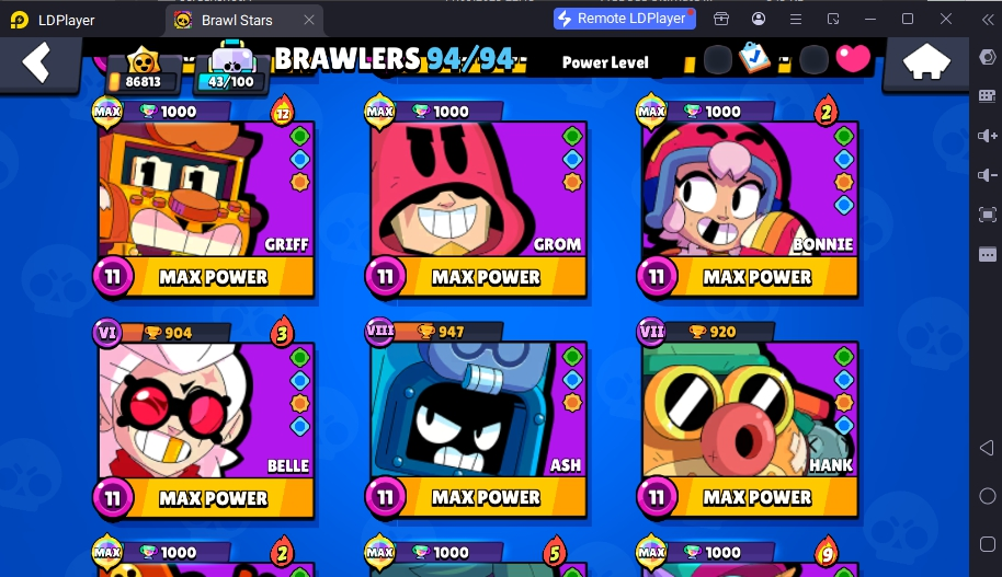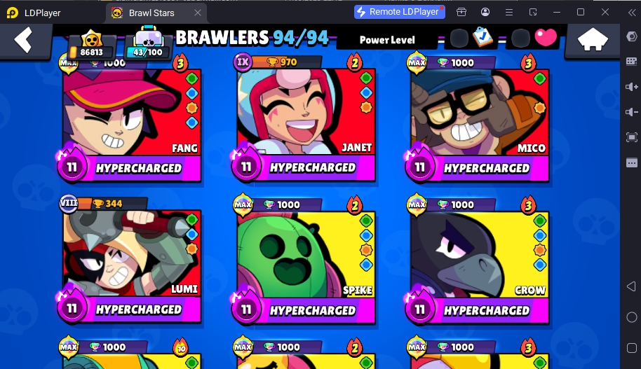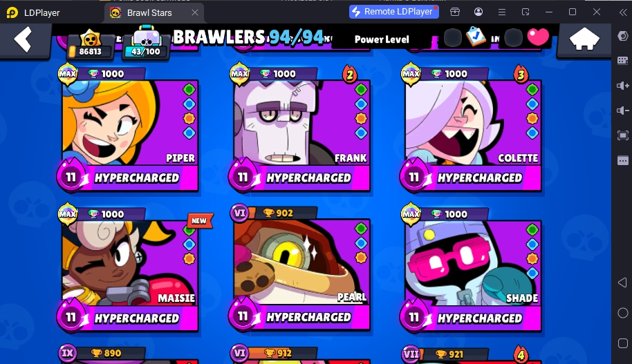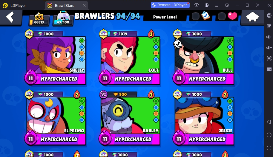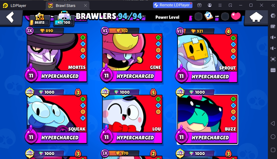 247 SKINS 💯 BORN BAD BUZZ 🧡 86.813 TROPHIES 🏆 94 BRAWLERS 🐼 38 HYPERCHARGED 🩸 75 MAX BRAWLERS 💛 DEMON MORTIS 🧡 FANGUARD 🧡 CAT BURGLAR JESSIE 🧡 KING LOU 🧡 MECHA PALADIN SURGE 🧡 REBEL LOLA 🧡 RONIN RUFFS 🧡 WIZARD BYRON 💯