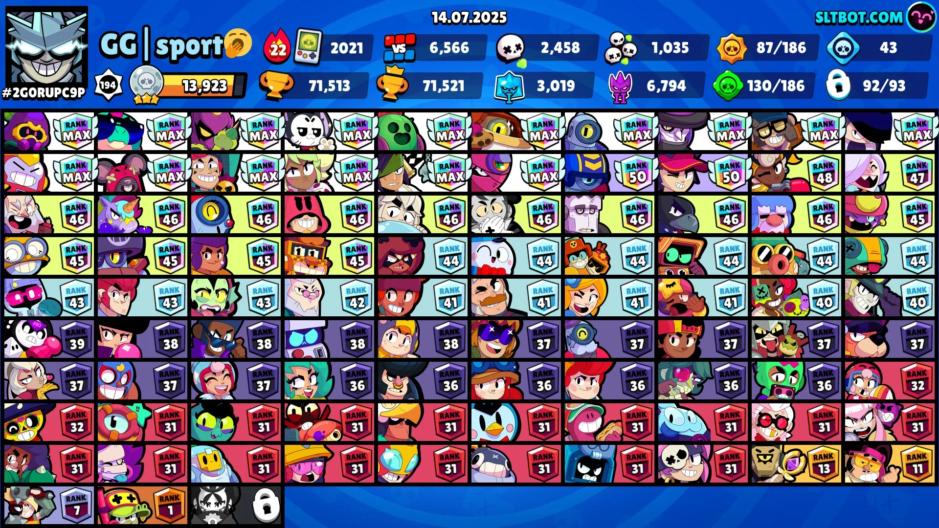 305 GEMS ⭐ 211 SKINS ⭐ 71.500 TROPHY ⭐ 92 BRAWLERS ⭐ 28 MAX ⭐ 17 HYPERCHARGED ⭐ CURSED KENJI ⭐FINAL BOSS RICO ⭐ LUNAR PIPER ⭐ SURGE KONG ⭐ KABOCHA FANG ⭐ SPIKE ⭐ LEGENDARY ⭐ LEON
