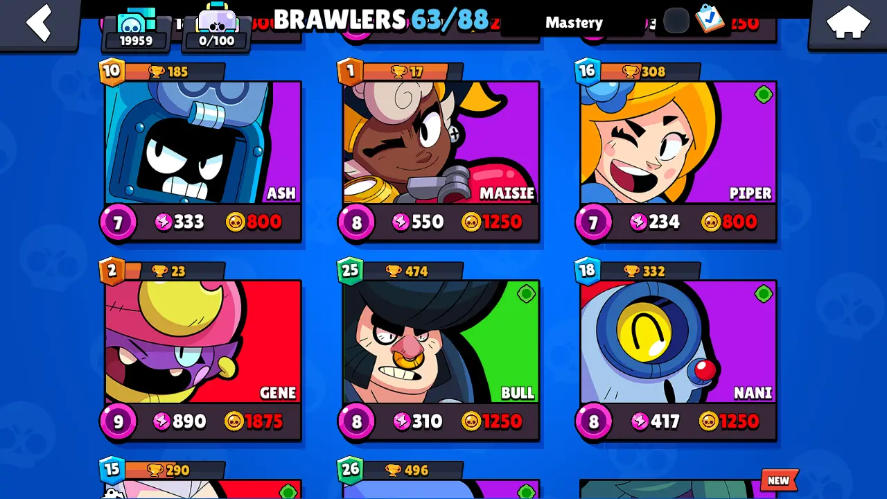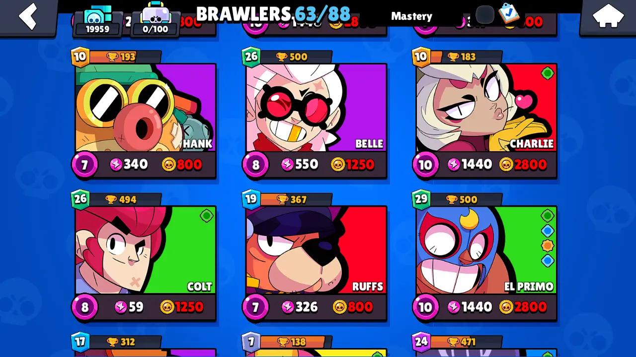 ✅ 63 BRAWLERS ✅ 19000 TROPHIES 🔰 40 SKINS 🔰 RANK 30 [2] 🔰 RANK 25 [17] 🔰 4 LEGENDARY 🔰 BR48