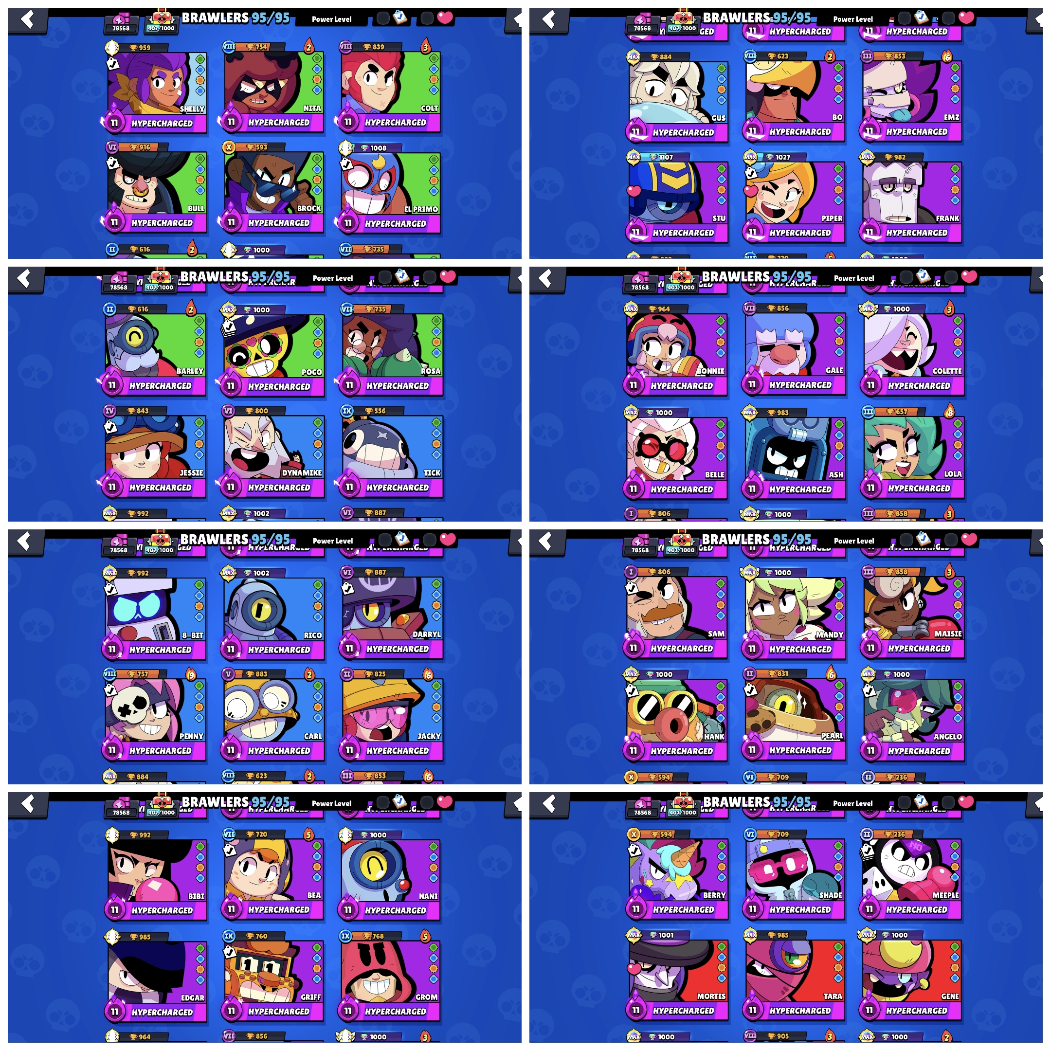 ☀️ 80k Trophy ☀️ 7x Old Masters ☀️ 3x New Masters ☀️ 1x Legacy r 35 ☀️ Mythic 2 Power League ☀️ Masters 2 Ranked ☀️ 11k Ranked elo ☀️ Solar 3 Fame ☀️ 370 Skins ☀️ 90x Maxed ☀️ 7x Old Brawl passes ☀️