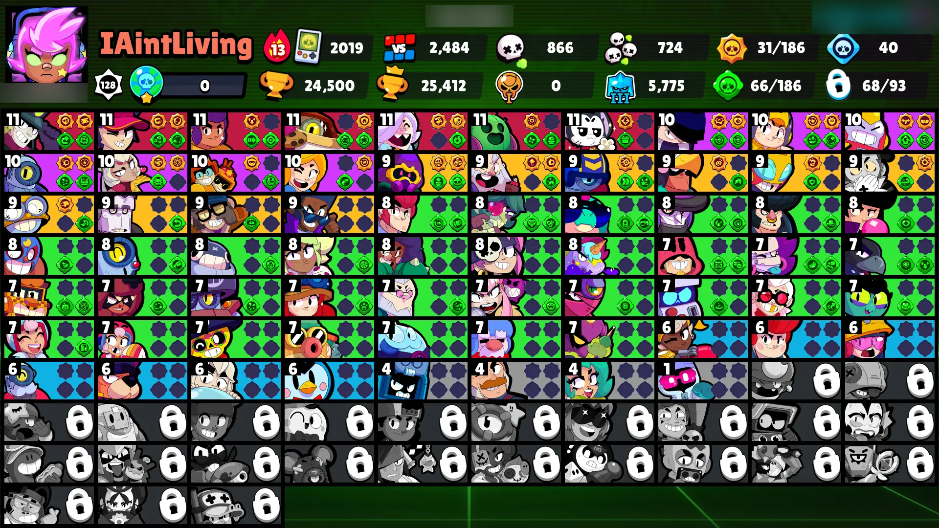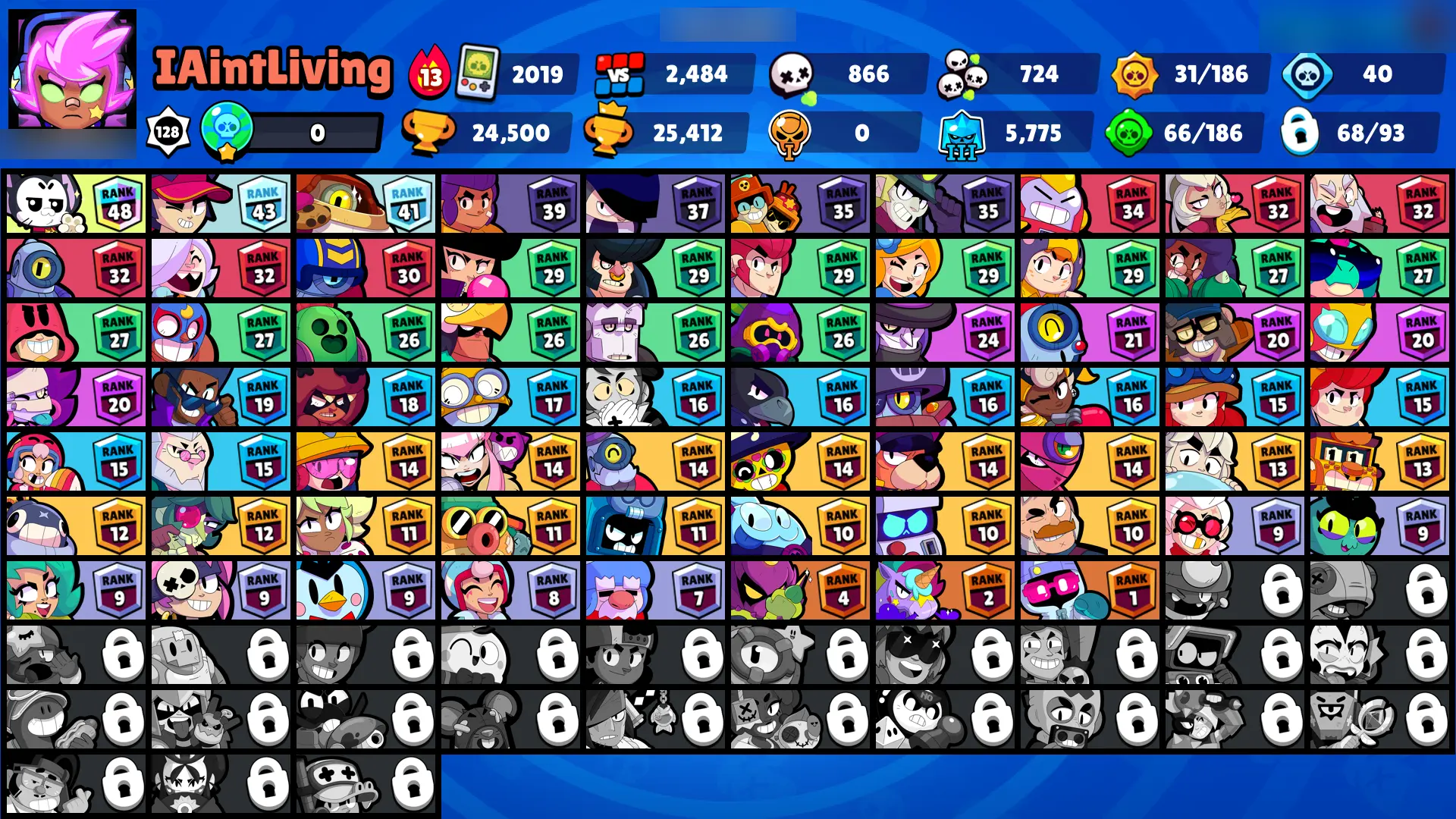 89 SKINS | 24500 TROPHIES | GODZILLA BUZZ | COCO ROSA | SULTAN CARL | ROBO MIKE | WARRIOR BO | LUNAR PIPER | CURSED PIRATE BIBI | GALAXY STORM LOLA | TECH MAISIE | DARK HORSE BERRY | SIF MELODIE | SCARLET PALADIN SURGE | 68 BRAWLERS