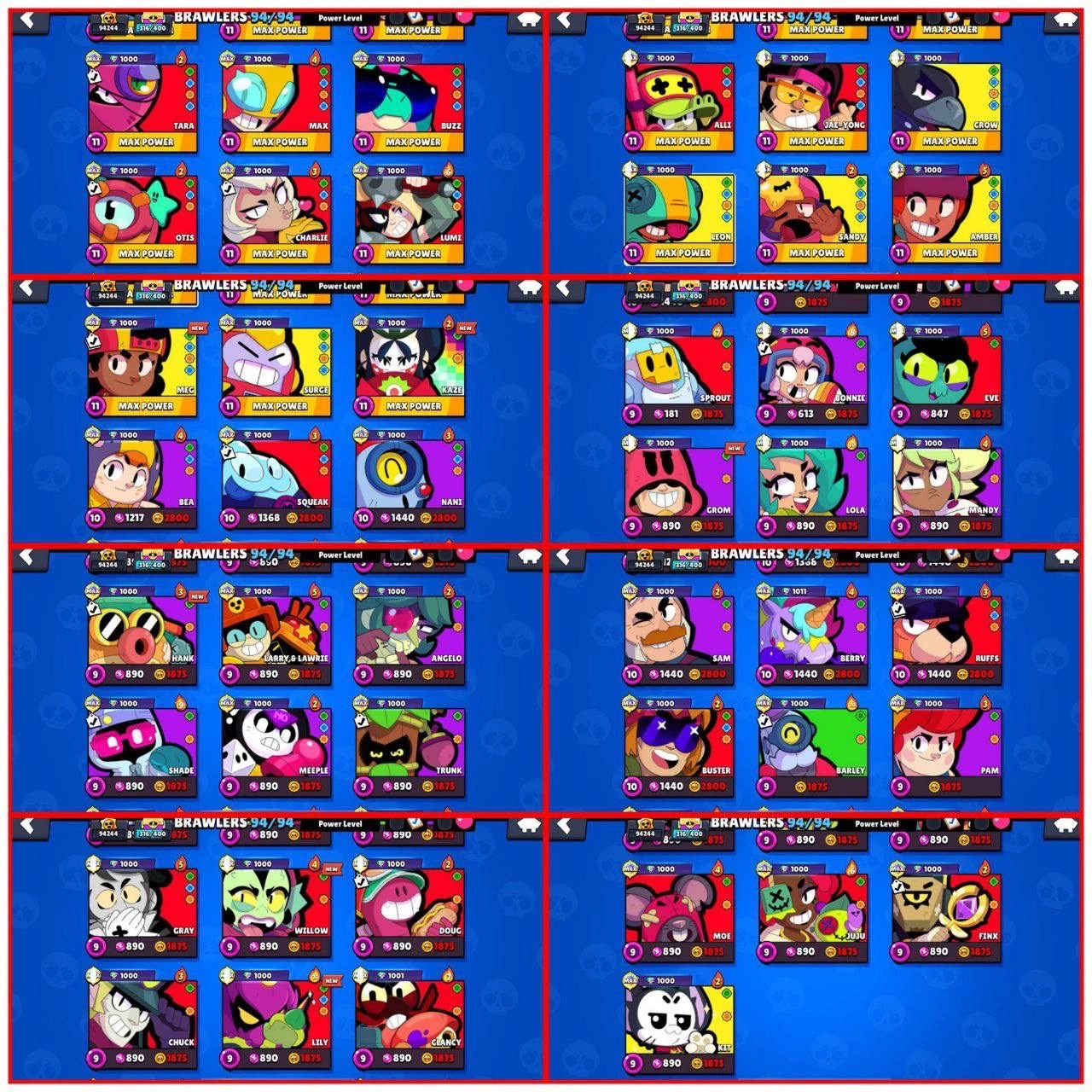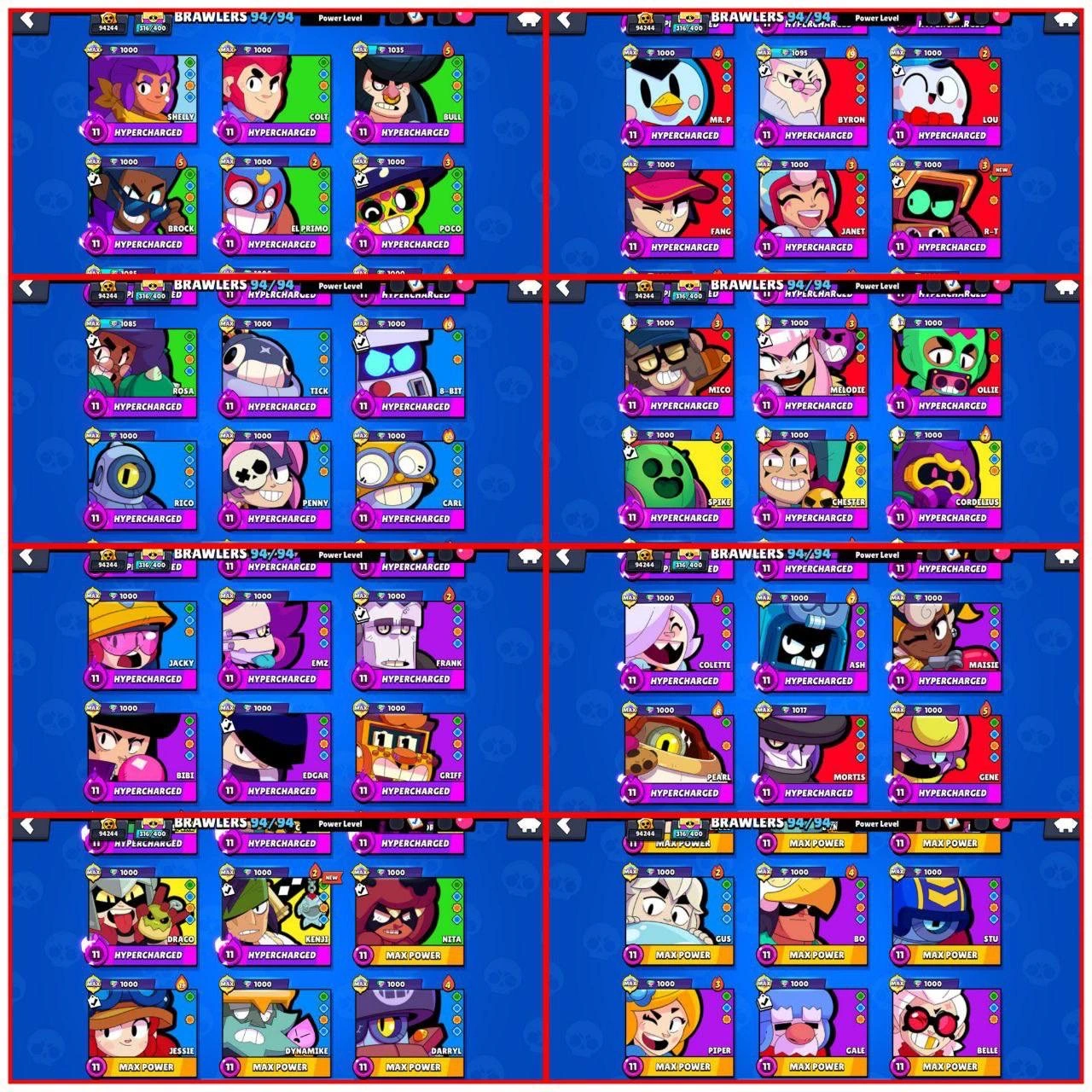94000+ TROPHIES 🔥 WAREWOLF LEON, JETSKI JACKY, TRUE GOLD BROCK ⭐️ 63 MAX POWER BRAWLERS 💫 38 HYPERCHARGED 💥 GHOULISH DYNAMIKE, ATHENA PIPER, ONI KENJI, BUZZ PATTRICK, WIZARD BYRON 🌊 250+ TOTAL SKINS ⚡️ CURRENT SEASON PRO PASS