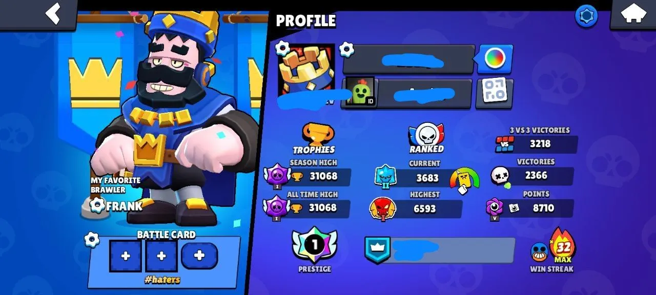👑 BLUE KING FRANK 😱 ×5 FREE BRAWL PASSES 🏆 31K+ TROPHIES 🔥 30+ MAXED BRAWLERS [ 16 HYPERCHARGED ] 😍 ×19 LEGENDARY SKINS | ×18 MYTHIC 🤩 ×1 PRESTIGE TROPHY ❗️-1.6k GEMS 🤖 81/93 BRAWLERS UNLOCKED 🤝 SAFEST AND INSTANT DELIVERY!