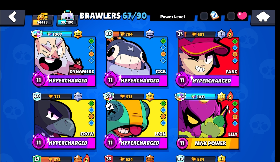 🔥 Brawl Stars Account 🔓 34,428 Trophies ⭐ 67 Brawlers 🦸♂️ 120+ Skins 💎 Max Gear + Legends Like Leon, Crow, Spike 🎯 Global Server 🌍