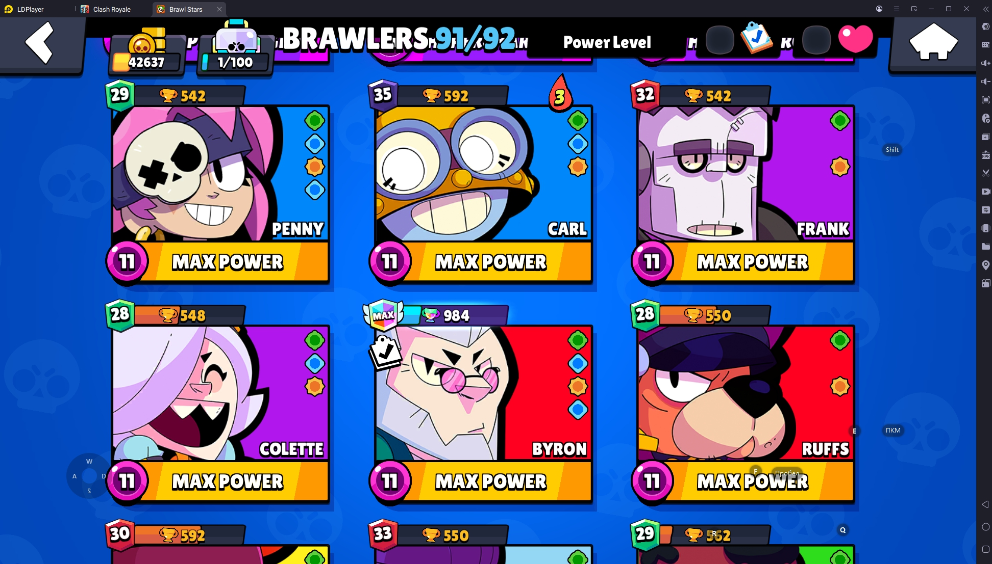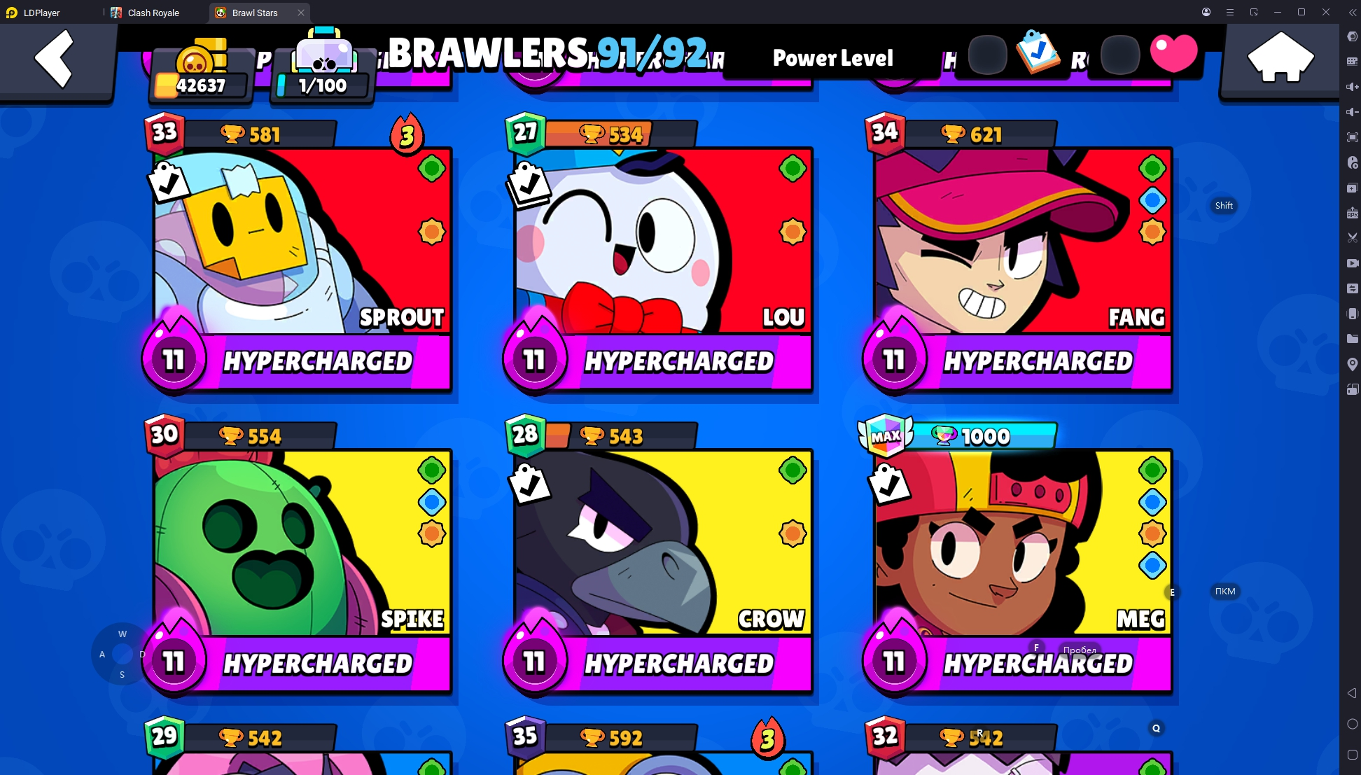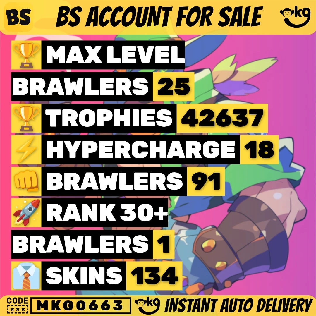 134 SKINS 💯 42.637 TROPHIES 🏆 91 BRAWLERS 🐼 18 HYPERCHARGED 🩸 25 MAX BRAWLERS 💛 CURSED KENJI 🧡 !MKG0663